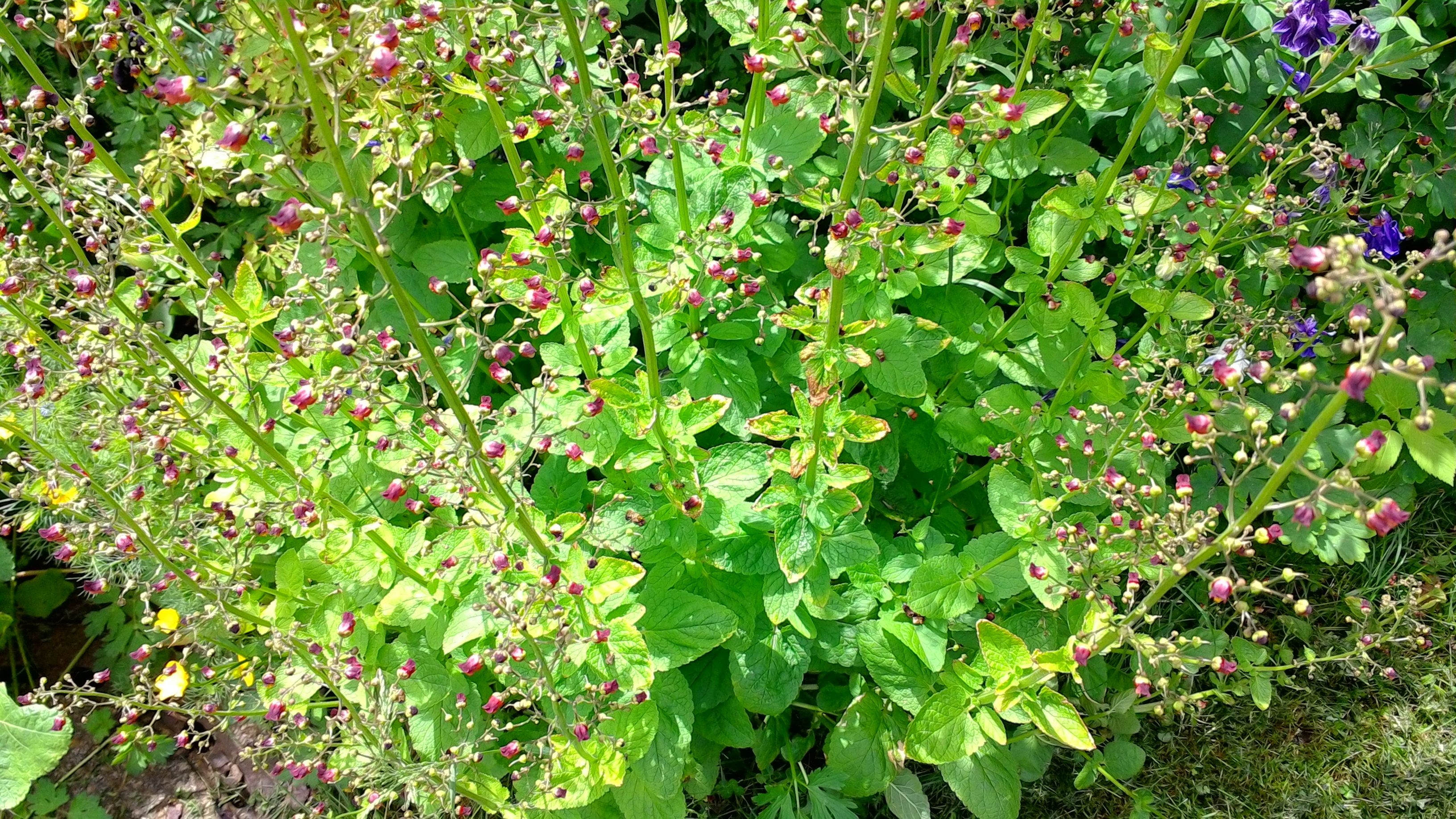 ich habe eine Blume im Garten (seit letztem Jahr), die von Bienen, Hummeln und Wespen gleichermaßen besucht wird. In meinen Pflanzenbestimmungsbüchern habe ich sie bisher nicht gefunden. Vielleicht könnt ihr mir einen Hinweis geben.