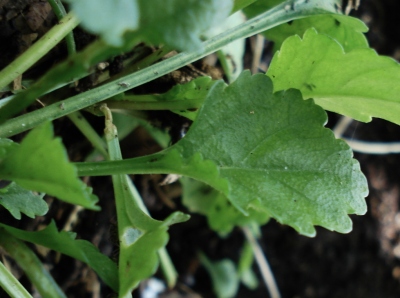 ich schließe mich Dreitagebart und belascoh an. Viola ist es auf keinen Fall und der "pelzige" Belag lässt auf Ehrenpreis schließen (einfacher wäre mit Blüte ).
