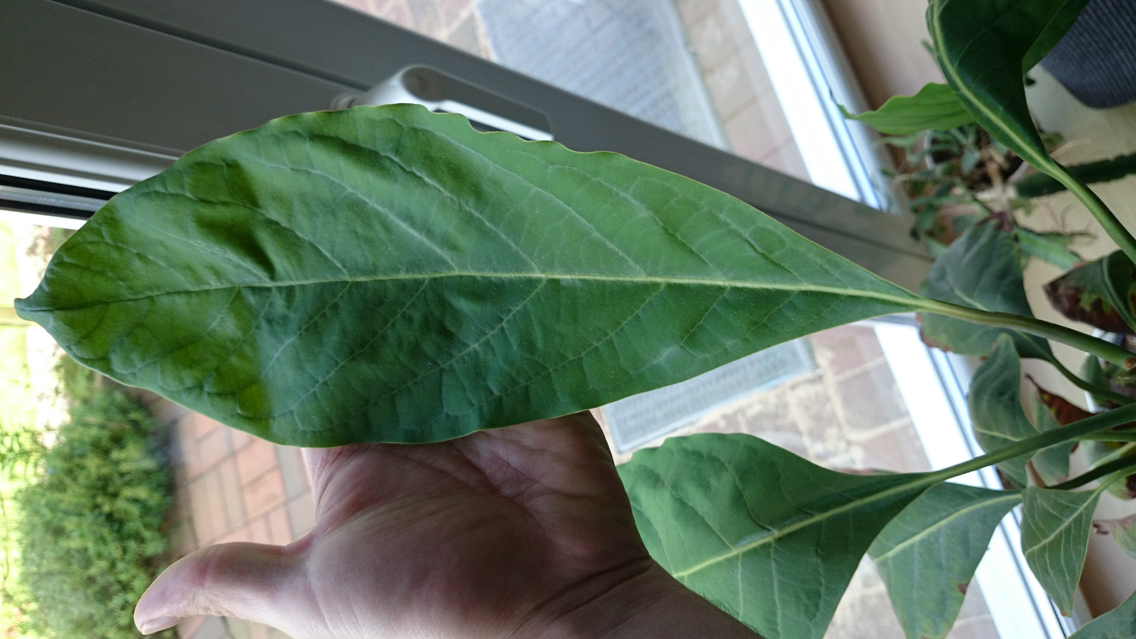 Der Samen dieser Pflanze wurde vor ein paar Jahren, unbedacht, mitgenommen, und blühte bei uns zu Hause in einem Topf auf. Die Blätter der Pflanze sehen schön aus, nur haben wir keine Ahnung was das für eine Pflanze ist!?