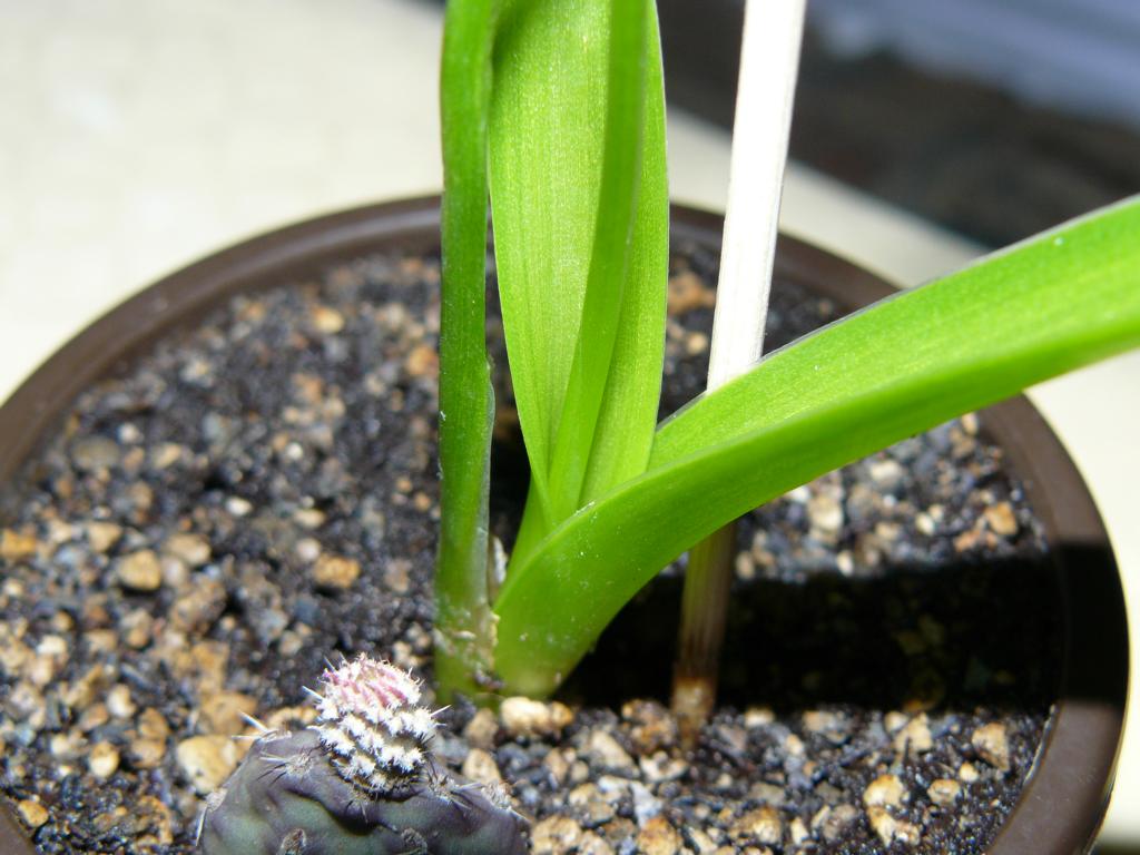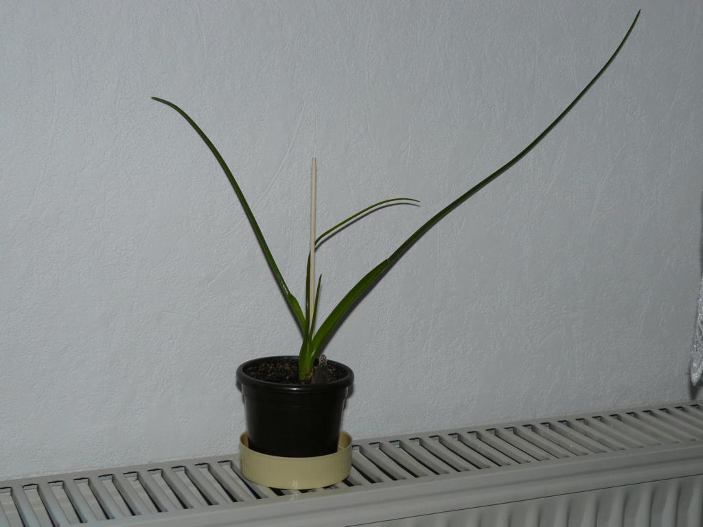 Ich habe diese Frucht eingepflanzt und nach ca. 2 Monaten ließ sich ein kleiner Trieb blicken. Sah aus wie Schnittlauch. Inzwischen ist diese Pflanze gewachsen. Die Blätter sind rund und werden ziemlich lang. Sie sind nicht starr, haben keine Zacken und keine harte Blattspitze. Ein neues Blatt schiebt sich immer aus dem vorhergehenden heraus, welches sich dabei unten öffnet.