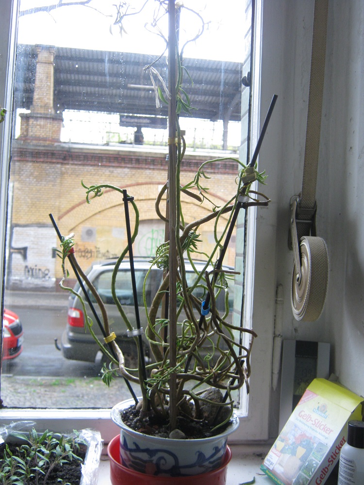 No 1 - wahrscheinlich völlig verwachsen. Stand bestimmt viel zu dunkel........war ein wahres Knäuel an ineinander verschlungenen Trieben. Das bemitleidenswerte Teil sollte dann entsorgt werden (!), was ich gerade noch verhindern könnte. Beim anschließenden umsetzen und trotz behutsamster Entwirrversuche sind doch einige der langen Triebe abgebrochen (waren z. T. einfach zu krumm). Den Rest habe ich bestmöglich aufgebunden und hoffe, dass sich alles in der Zunkunft positiv verwächst. Denke an Senecio, bin mir aber nicht sicher! Ich habe die abgebrochenen Kopfstücke in Seramis gesetzt, ev. bewurzeln die neu?