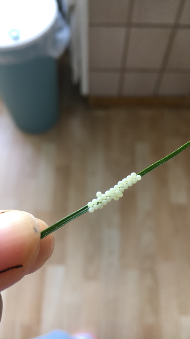 Ich hab das Blatt erstmal entfernt, die Eier vernichtet und sofort entsorgt.