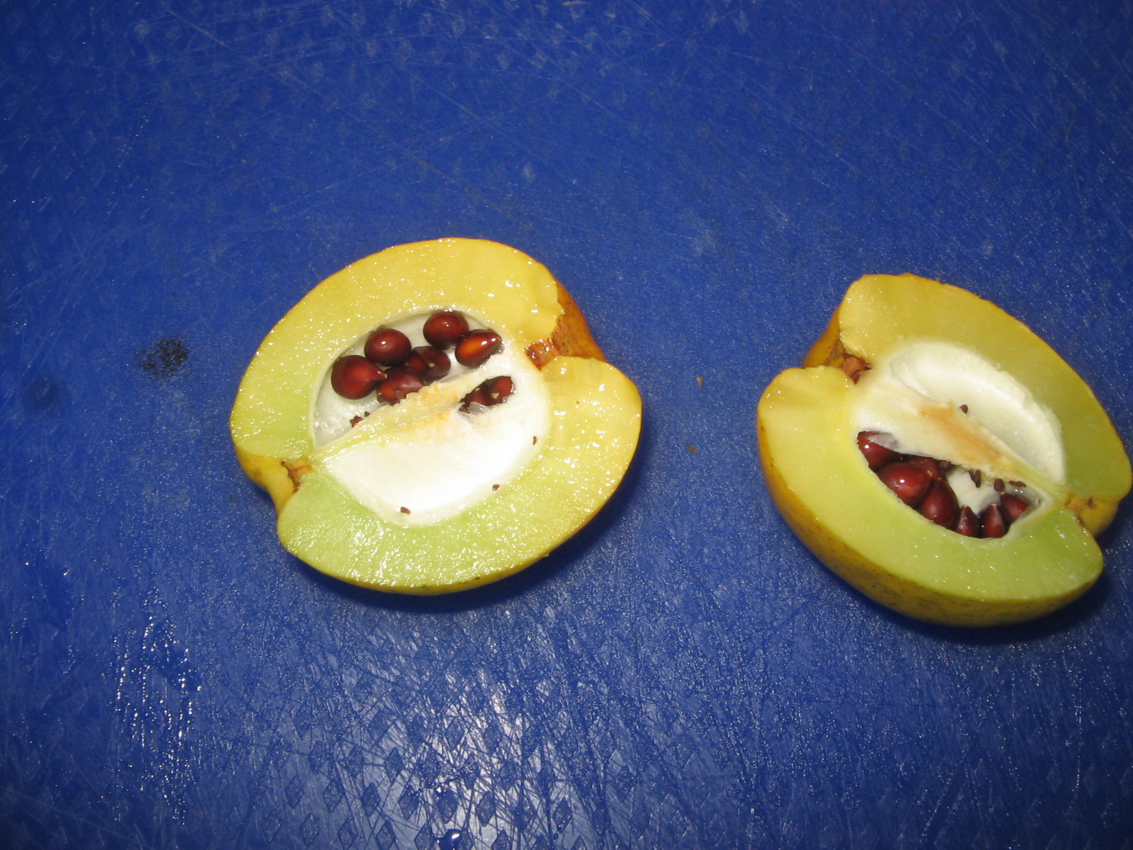 Ja, daran hatte ich auch flüchtig gedacht. (Hab die Dinger schon öfter gesehen). Aber das Innere schien mir so gar nicht quittenartig. Und dann die Stacheln.....