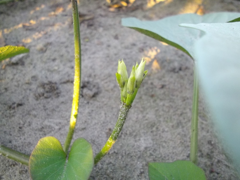 Da die ersten Triebe sich gerade an den benachbarten Sonnenblumen anfingen hochzuschlingen, dachte ich an ein Windengewächs