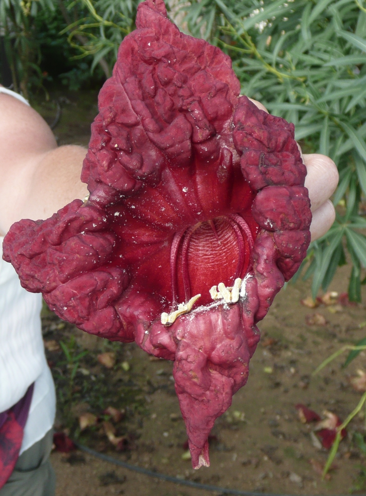 ich hätte da einen Baum zu bestimmen. Ich hab ihn auf Malta gesehen. Leider hatte der Baum zu dem Zeitpunkt keine offenen Blüten. So daß ich nur eine abgefallene Blüte Fotografieren konnte.