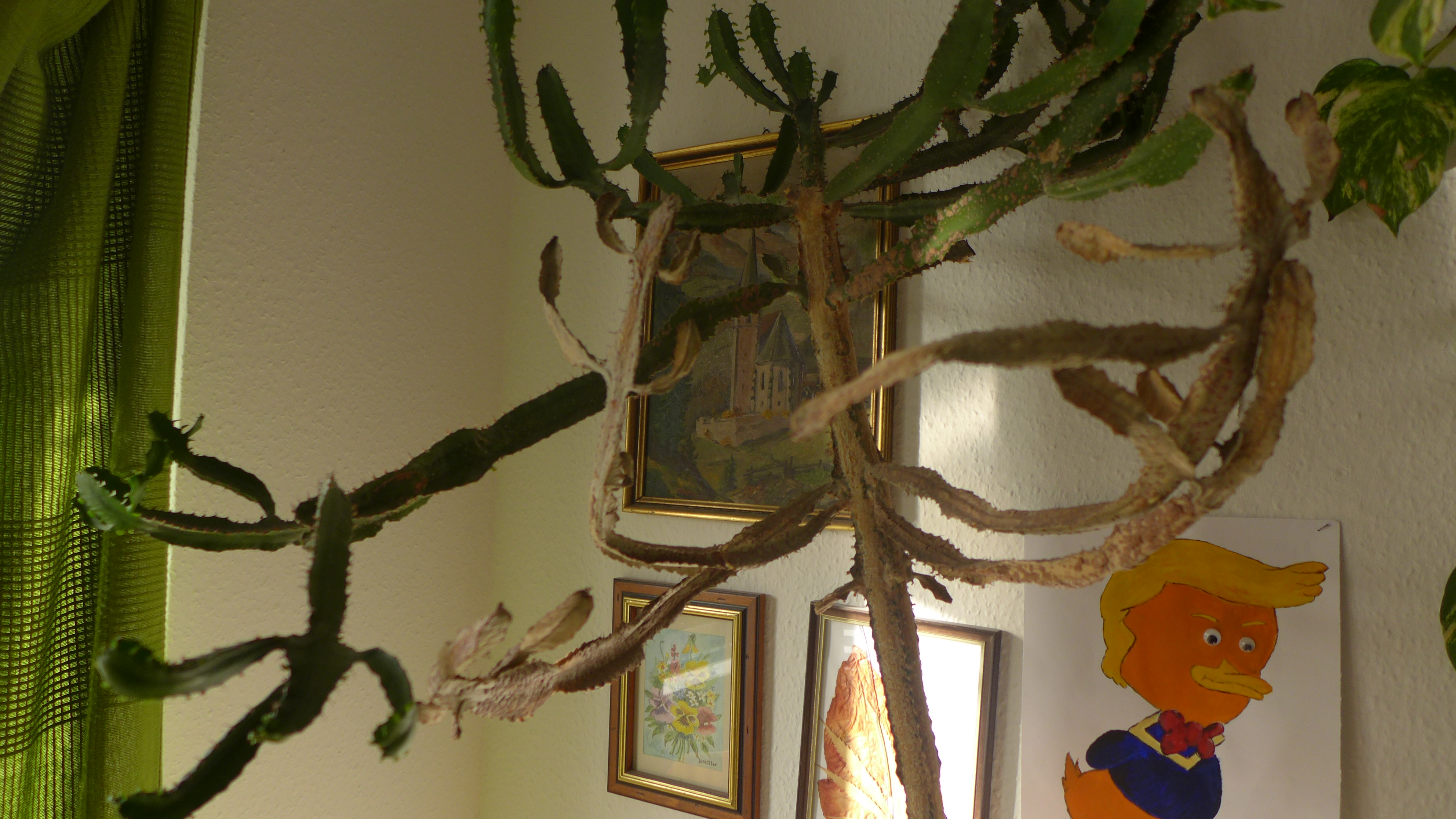 weiß jemand, wie dieser Kaktus heißt? Er ist in der unetern Hälfte mit einer braun/grauen "Schicht" überzogen, von der ich nicht genau weiß, ob sie nicht einfach Teil des Kaktuses ist. Er hat diese jedenfalls schon seit dem ich ihn habe (mehr als einem Jahr und womöglich schon länger). Meine Theorie ist auch, dass es sich um den normalen Wachstumsvorgang des Kaktuses handel.t Oben bilder er noch frusche Grüne Fortsätze, während er unten aus den alten die Nährstoffe abzieht und später abwirft. Er hat passend zu dieser (bisher frei erfunden Theorie) Reste von abgeworfenen "Ästen". Nunja.