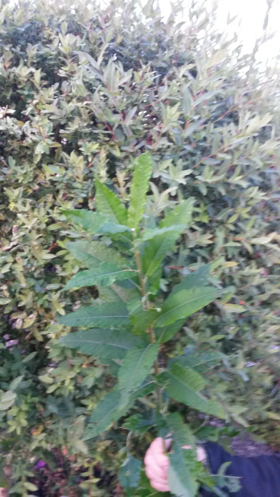 Dieser Stengel mit den großen Blättern wuchs unten aus dem Stamm. Die normalen Blätter sind die kleinen.