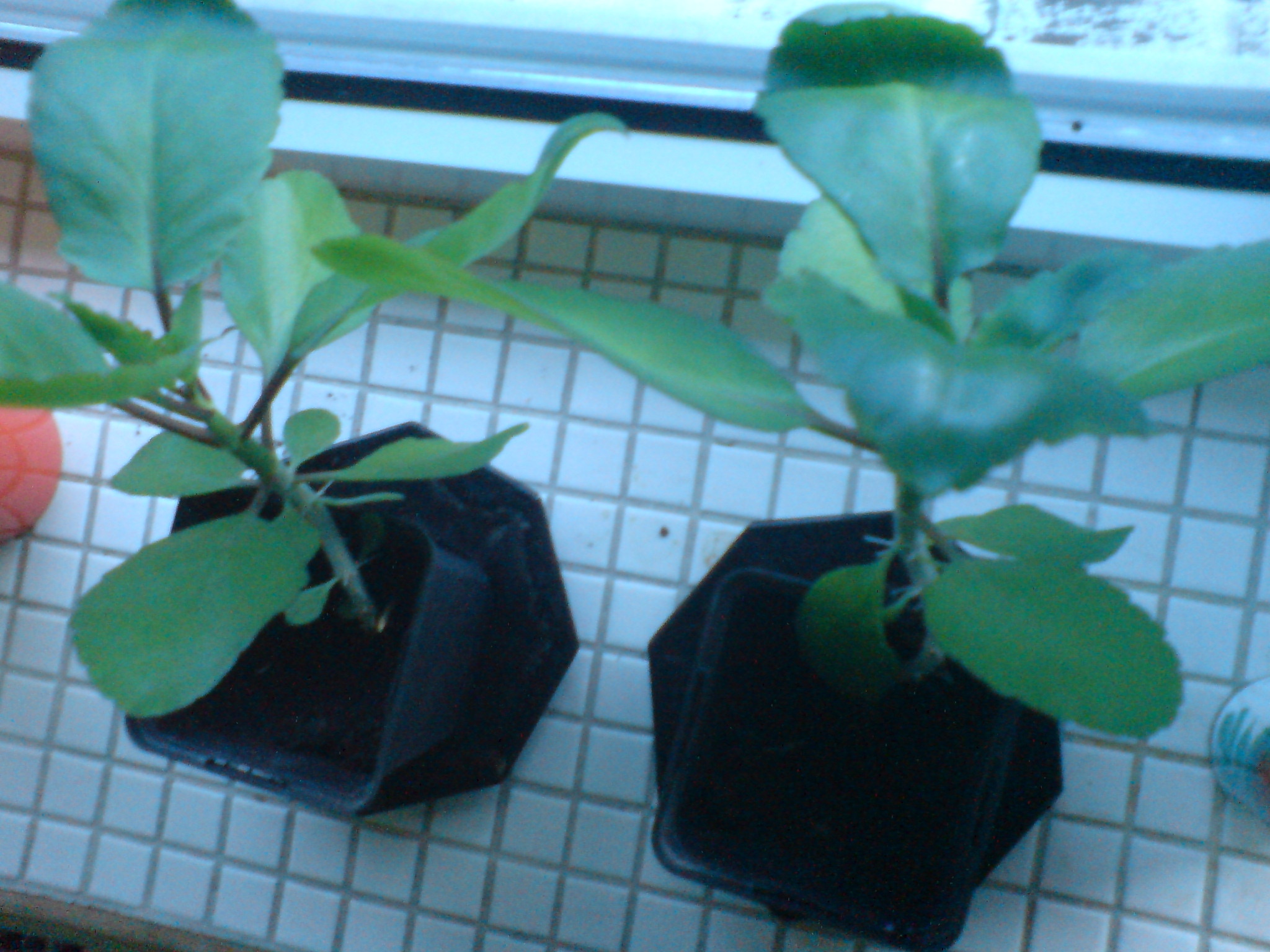 hallo! bei mir auf der Fensterbank stehen sie, die beiden "aliens" aus Surinam. Hab kürzlich nochmal einige Blätter in ein Buch gelegt- diesmal ein anderes von einem anderen Verlag-schmunzel- Und siehe da, auch diese Blätter treiben aus! Als Beweis ein Foto.