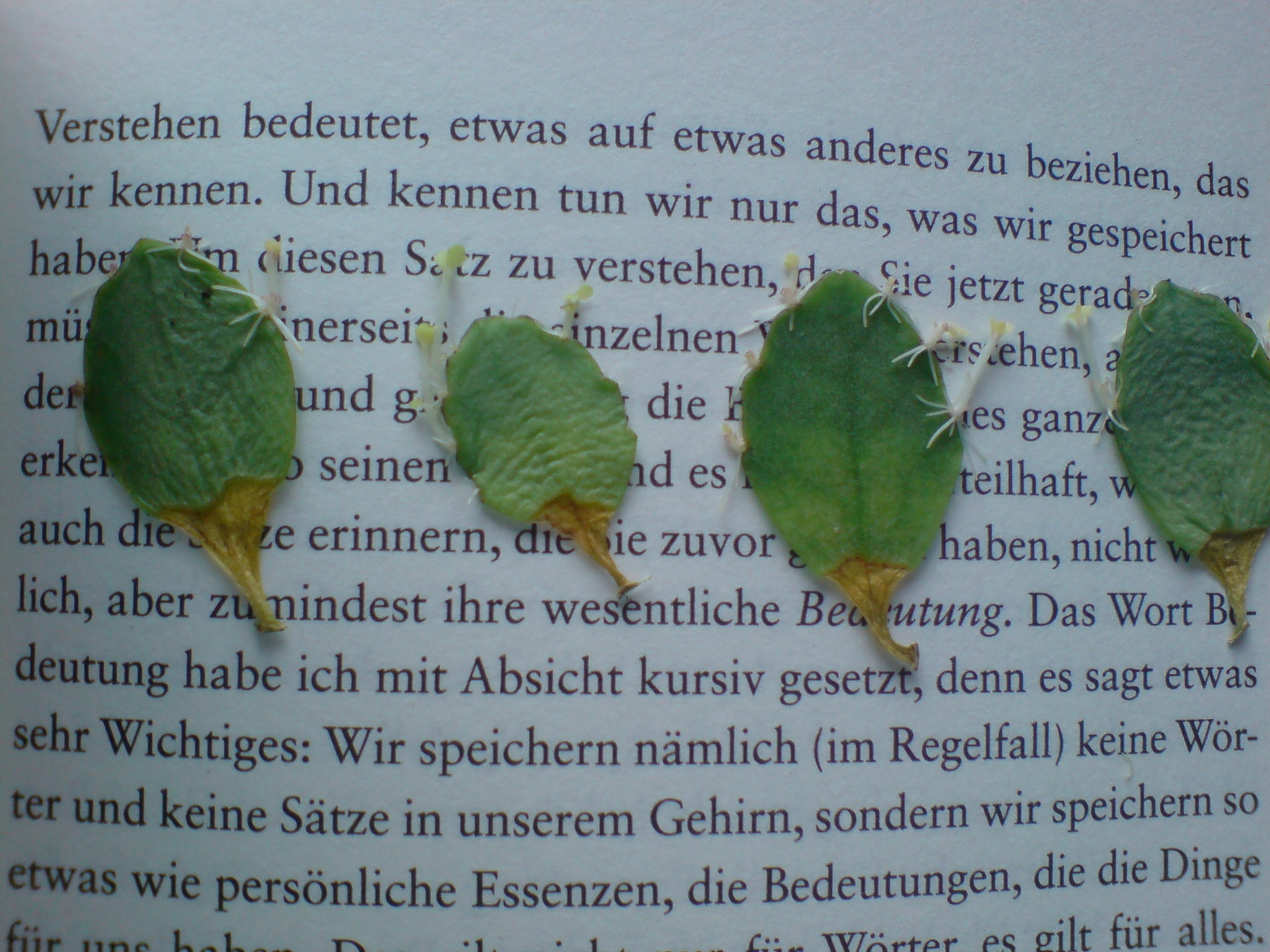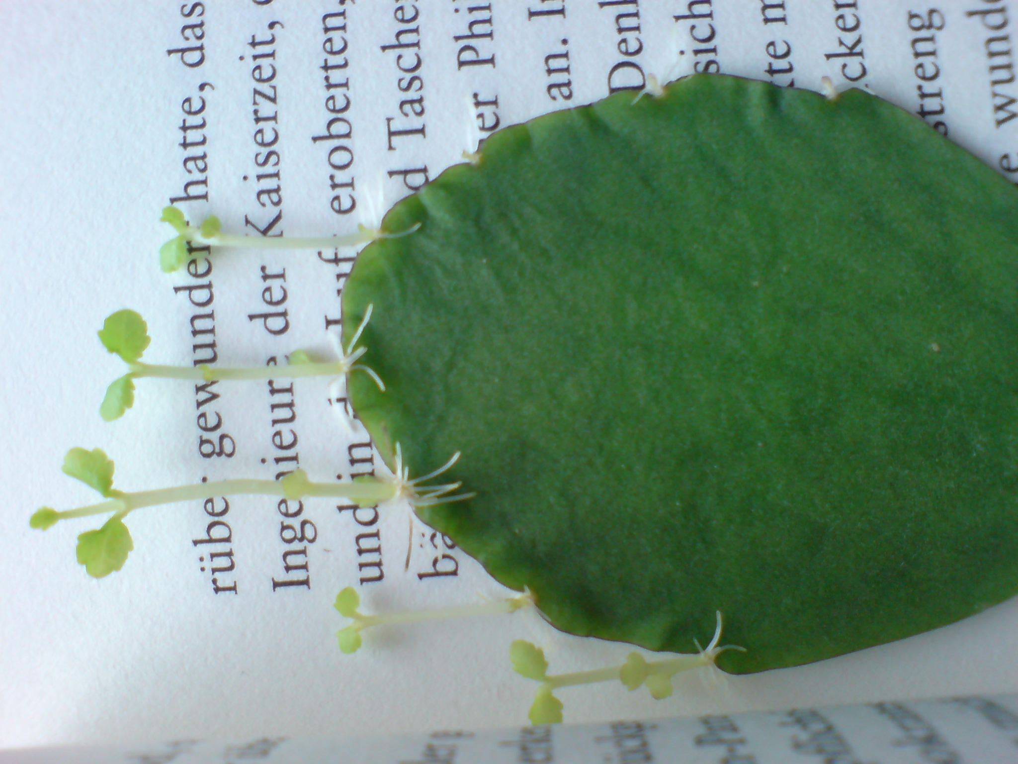 Ein Blatt flach auf die Erde legen und feucht halten. An den Blatträndern bilden sich neue Pflanzen, wenn diese bewurzelt sind, werden sie eingetopft.