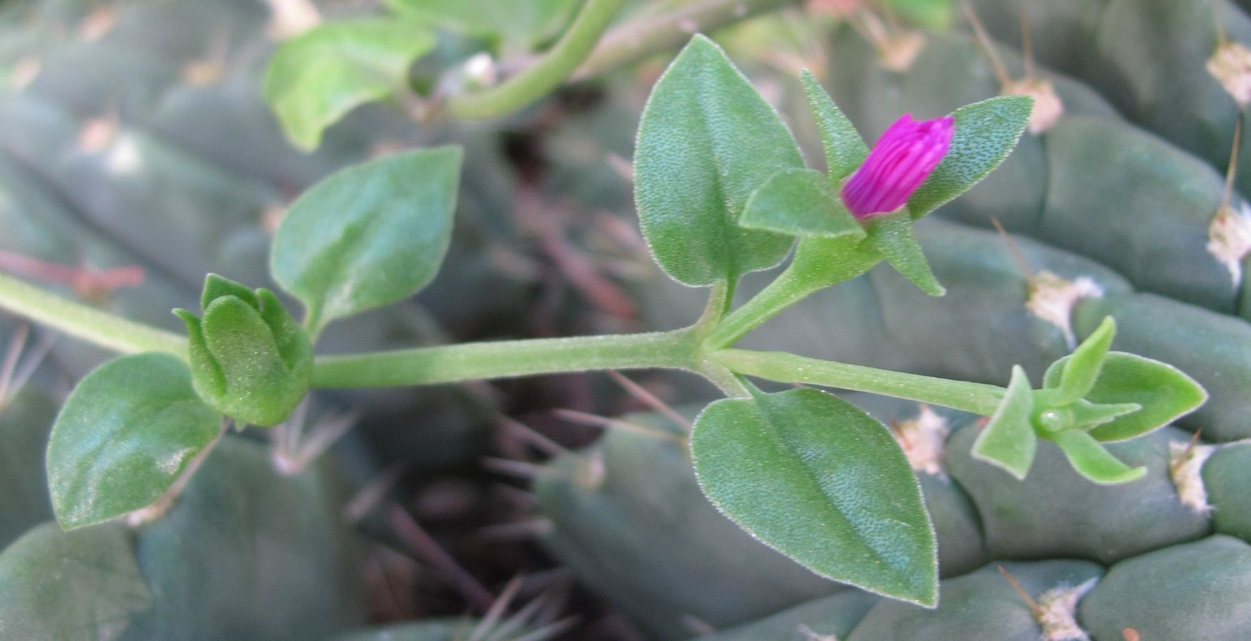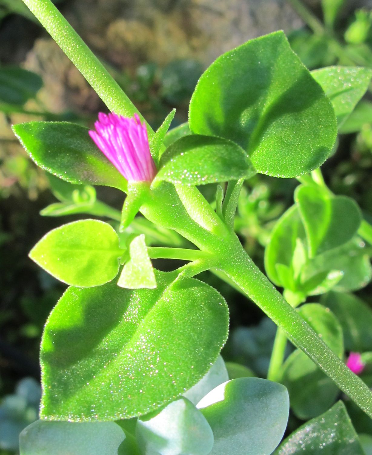 Als Bodendecker zwischen den Kakteen im botanischen Garten Bern wächst ein interessantes Mittagsblumengewächs. Welche Art ist das?