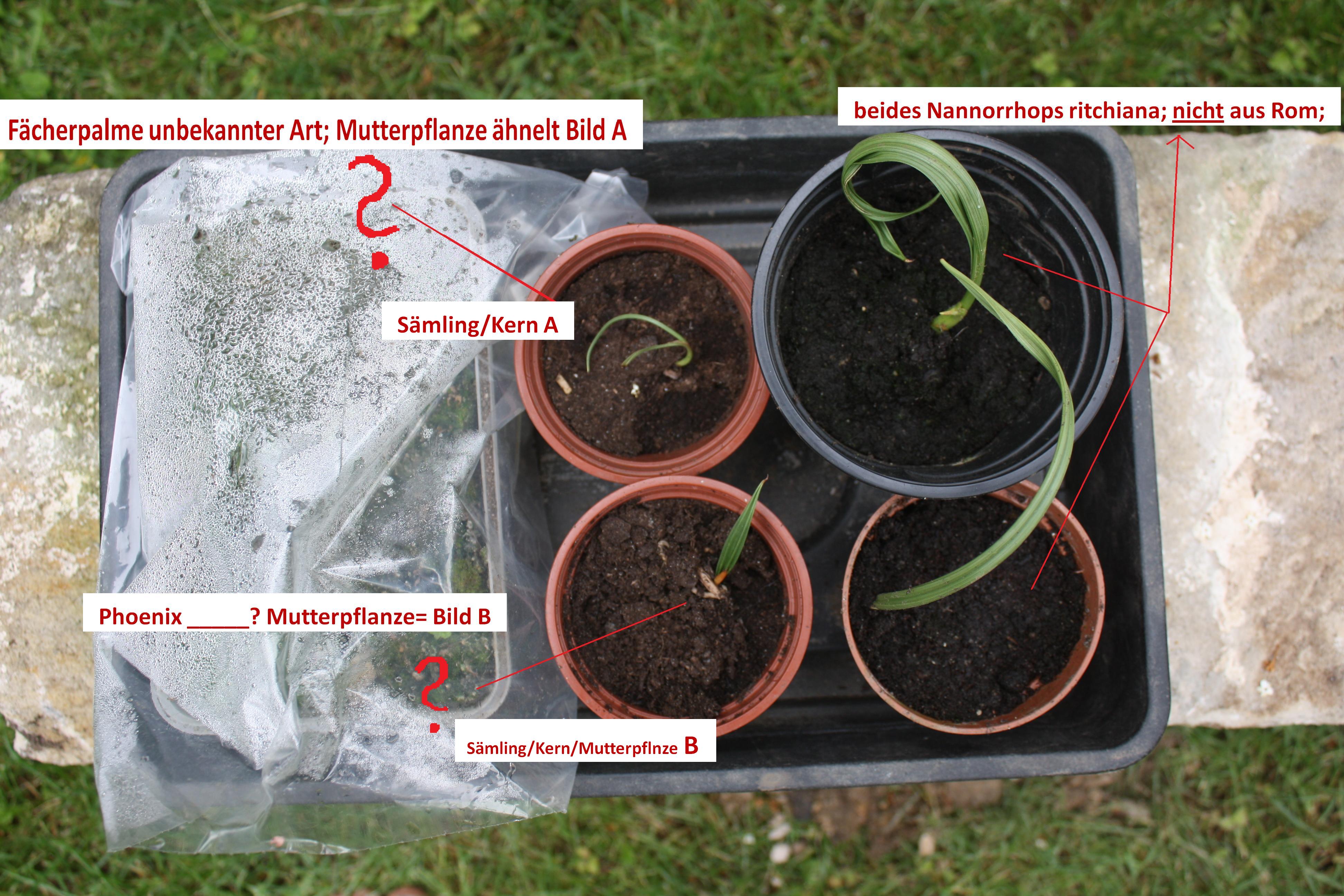 Jetzt möchte zum einen die Gelegenheit nutzen und euch bitten mir zu helfen, die beiden unbekannten, aufgegangen Palmenarten zu identifizieren: