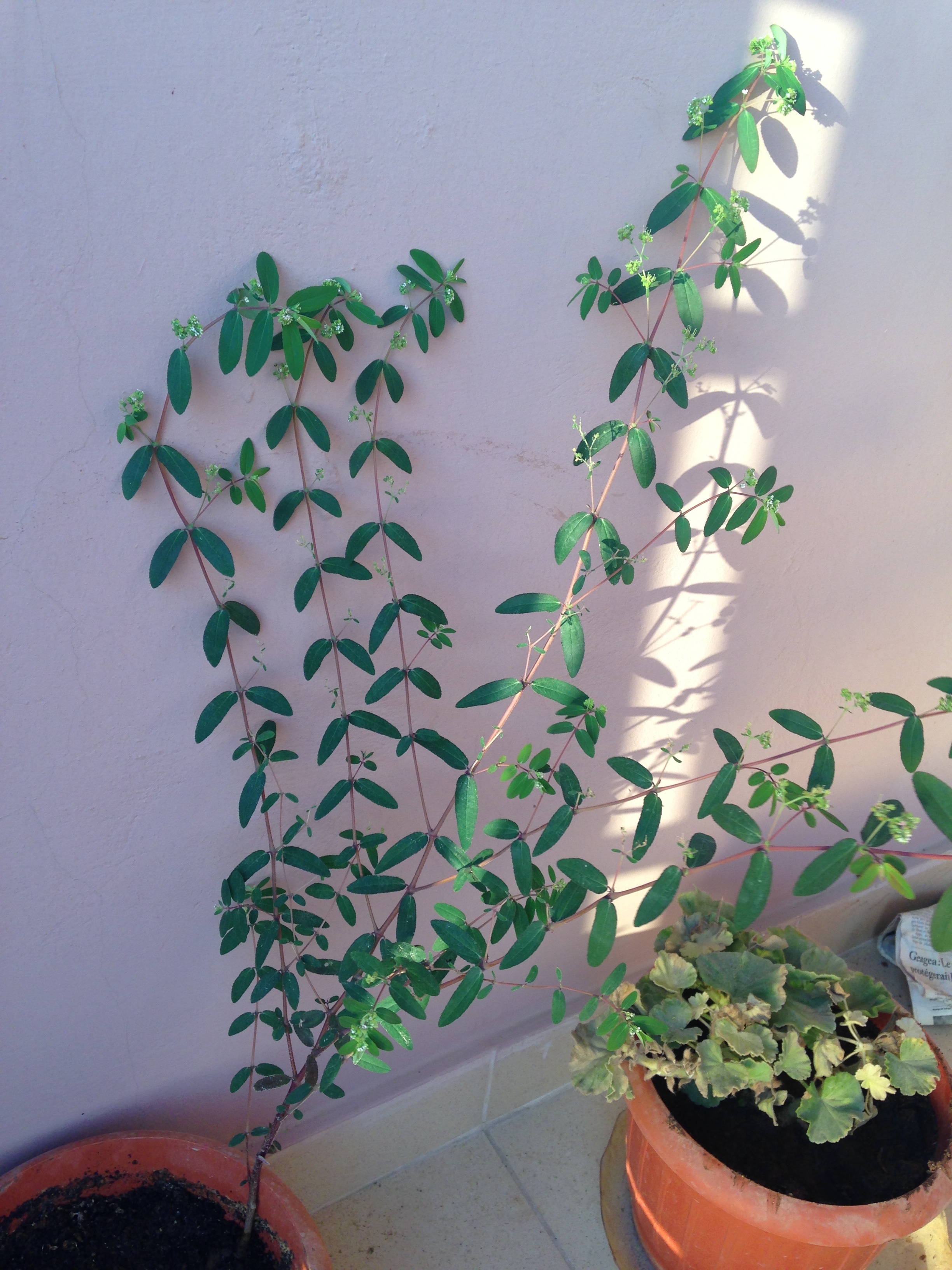 da ist noch so eine unbekannte pflanze, die in einem topf auf der Terrasse wächst...
