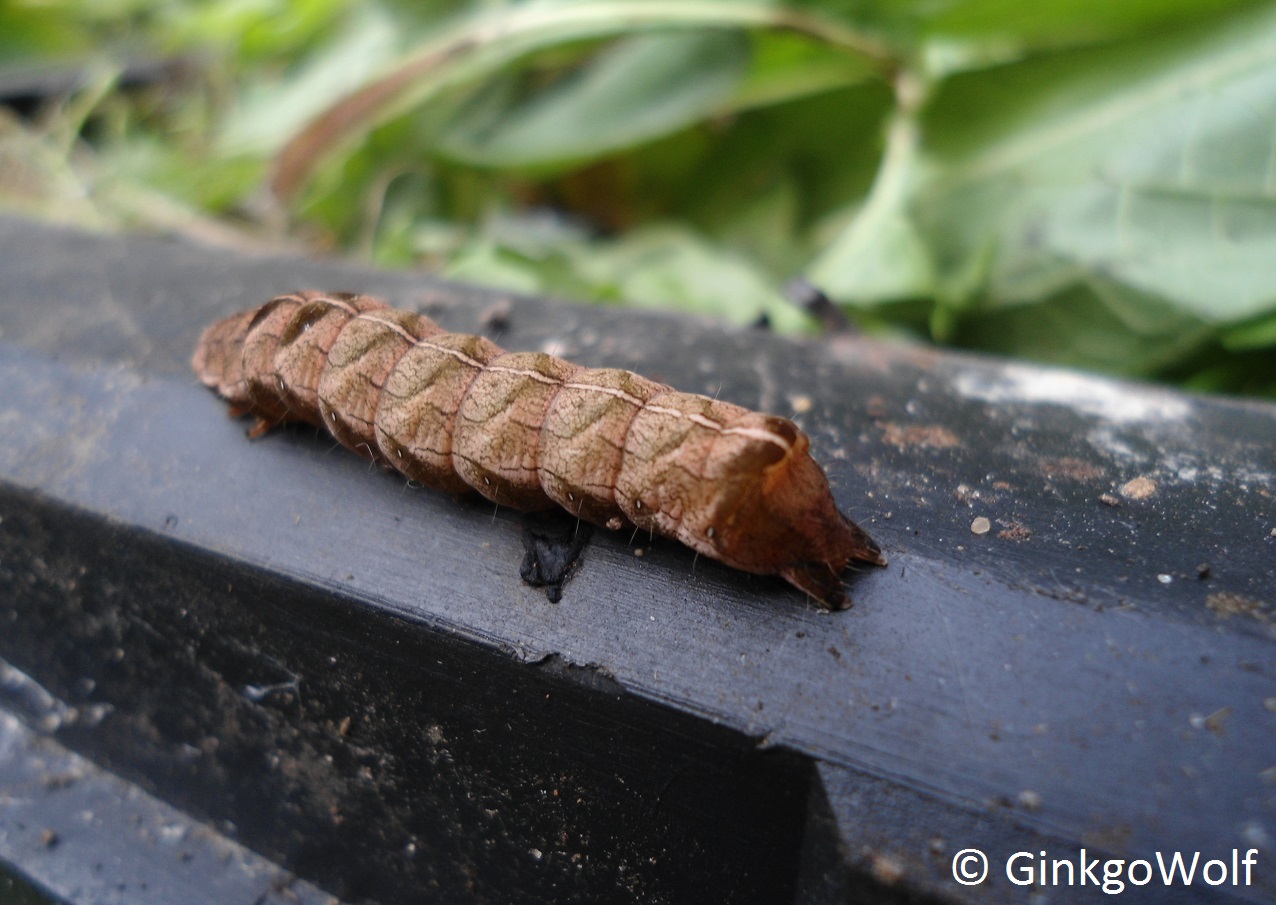 Aber ich meine, dass meine Raupe die typischen dunklen Flecken anders "sortiert" hat. Auf dem ersten Bild der vierten Reihe unter dem Stichwort "Ältere Raupenstadien" hat die ihre dunklen Flecken hinten und die werden nach vorne hin schwächer. Bei meiner sind sie aber von vorne an und werden nach hinten hin schwächer. Also genau umgekehrt.