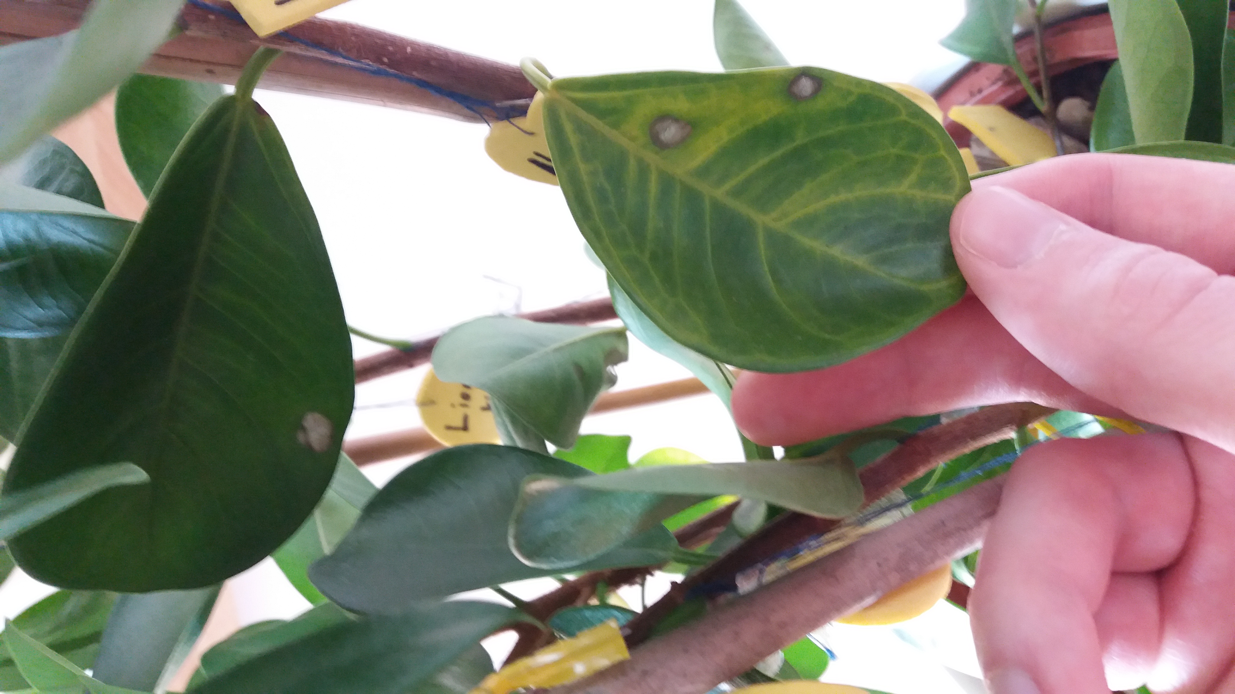 Heute zeigten sich dann die Flecken auf den Blättern und nach Beratung im Pflanzengeschäft hat ihn meine Freundin dann heute nochmal in frische, nicht zu nasse Erde gesetzt.