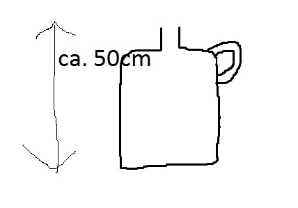 Ist im Prinzip ne Flasche, 50cm hoch, bauchig mit nem kleinen Henkel und einem 2,5-3cm dünnen Hals.