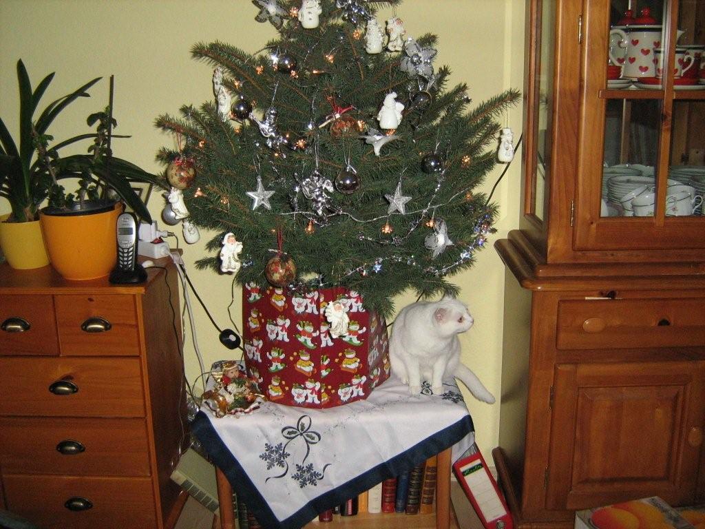 Stimmt, unsere beiden sind definitiv Zwillinge sie hat aber nur drunter gelegen und nichts kaputt gemacht! Die einzige Macke die sie hat.....sie frisst das Lametta, und ich hab dann rot-goldenen Stuhlgang im Katzenklo immer wieder ne Freude ich hab dann sogar im Katzenklo Weihnachten