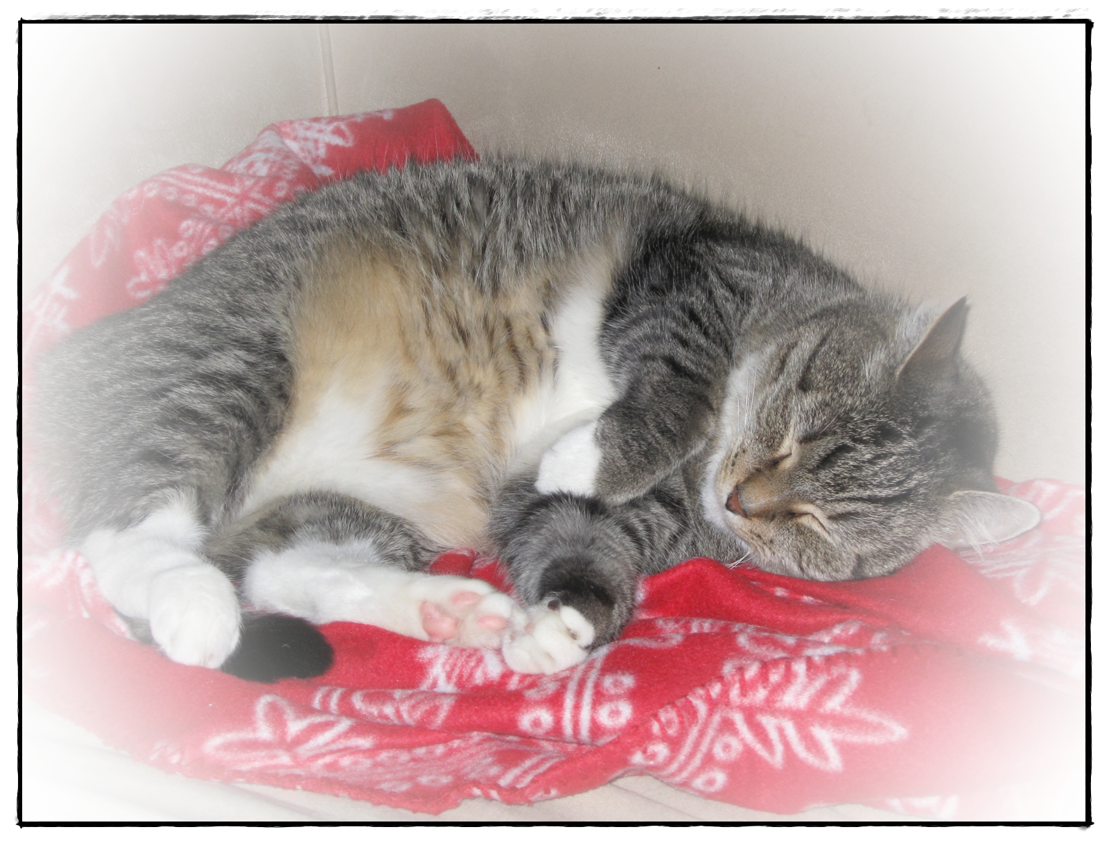 deshalb sucht sie sicher im haus nach einen platz und ebend hat sie einen gefunden mitten im flur auf ner alten decke im sessel,ich hoffe sie bleibt,ich hoffe es so sehr.