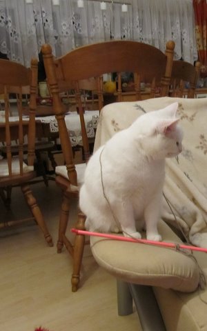 Den Federpuschel kriegen sie auch nicht zur alleinigen Verfügung, sondern nur, wenn ich ihn in der Hand habe. Ausgerupfte Federn werden weggeworfen.