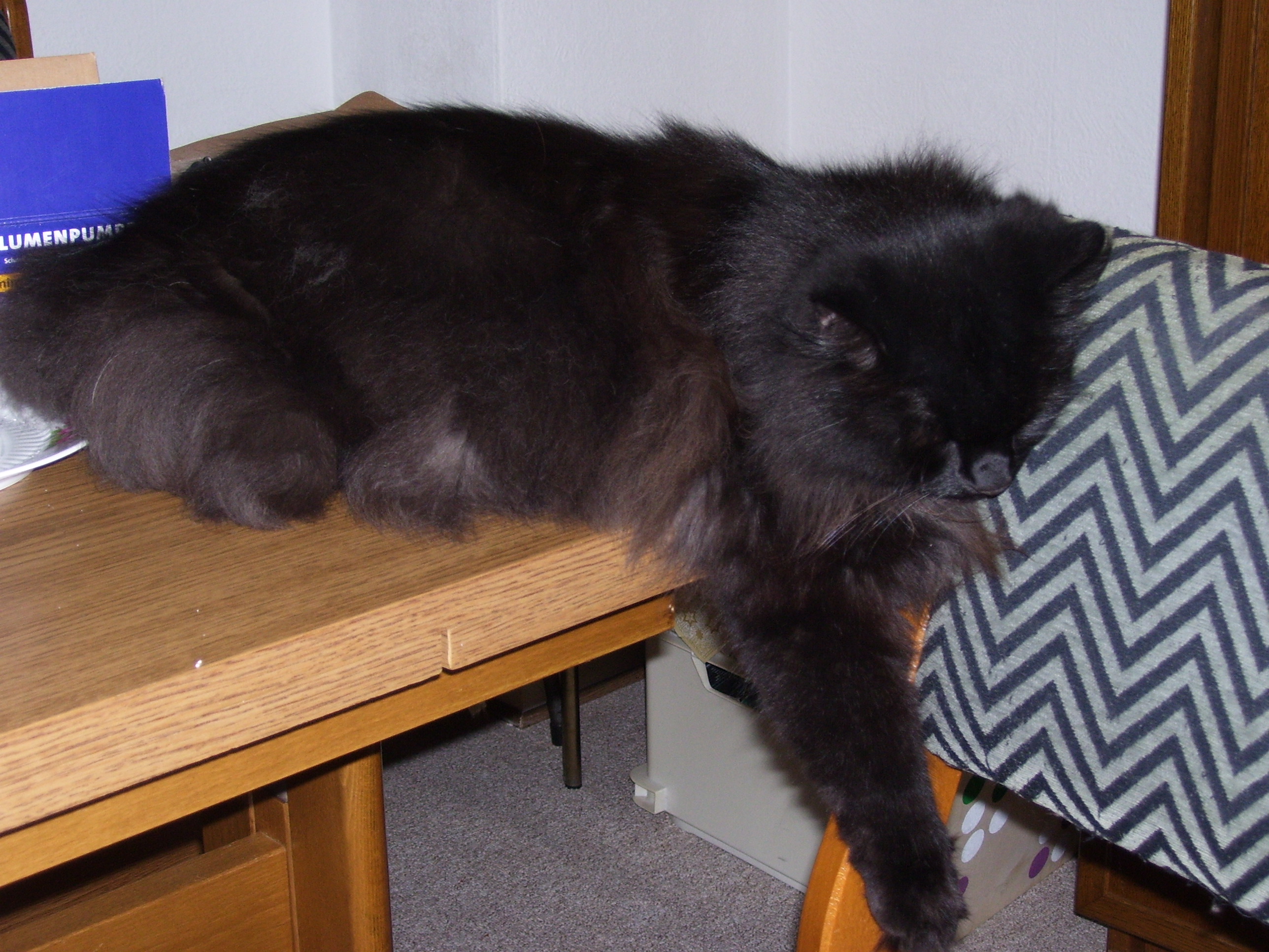 Mann, wenn ich eure Miezis so sehe, bin ich beruhigt, daß mein Mephisto offensichtlich doch normal ist!!! Ich kenn das alles nur zu gut: Diese Verrenkungen bis zur völligen Tiefschlafphase, das Kisten-, Karton- und Körbeschlafen, Schreibtische, direkt auf meinen Unterlagen, Computerbildschirme - bevor der flache kam -, Schranknischen, Stühle unterm Tisch, Waschmaschinentrommel, Koffer unterm Bett, das ungeliebte Katzentransportkörbchen.... all das hat mein Kater auch schon zum Schlafen benützt. Nur Blumentöpfe und den Bügelwäschekorb hat er noch nicht angerührt . Katzen sind einfach wunderbar - ich könnt ihnen ewig beim Schlafen zusehen!!!!