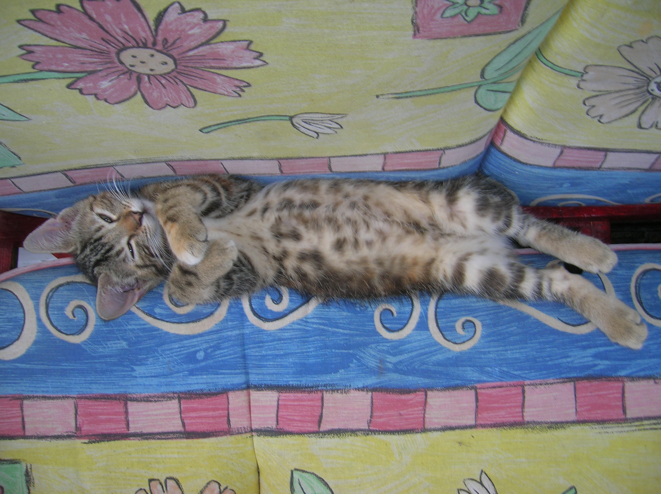 Unsere Raubkatze ist auch so ein Rückenschläfer, schaut mal