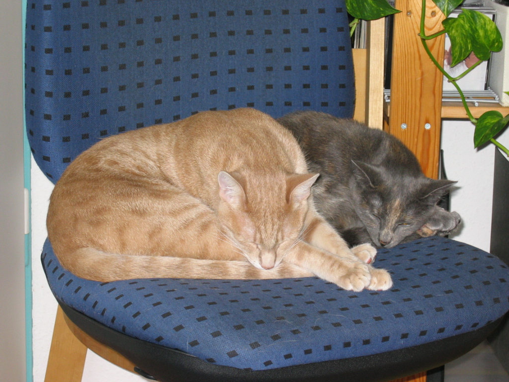 meine haben auch so ihre Schlafgewohnheiten - am liebsten das Mittagsschläfchen mit Körperkontakt auf meinem Bett.
