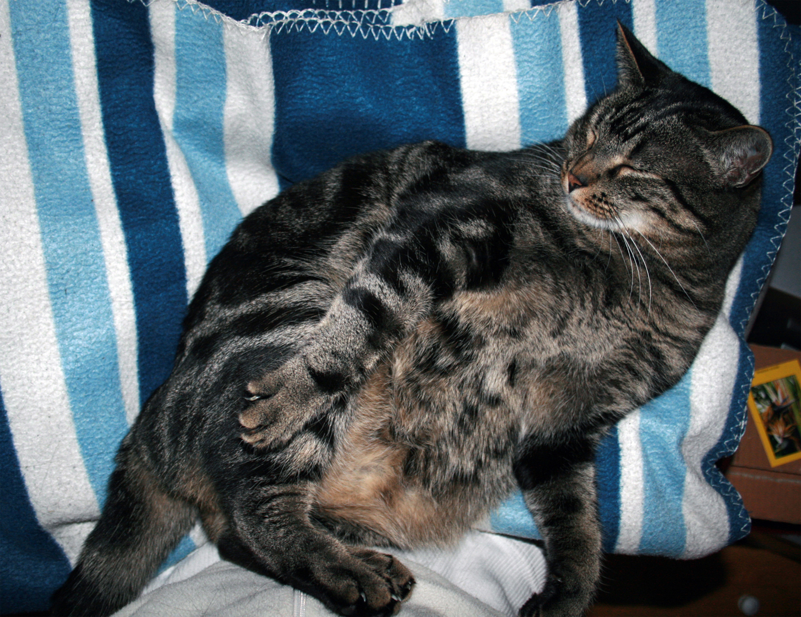 meine haben auch so ihre Schlafgewohnheiten - am liebsten das Mittagsschläfchen mit Körperkontakt auf meinem Bett.