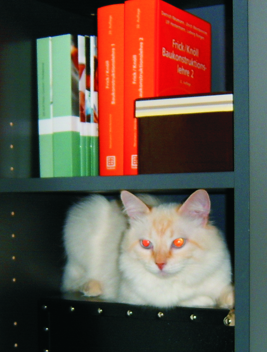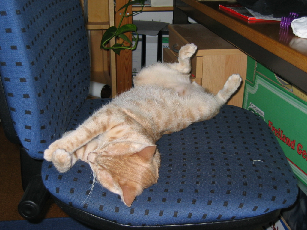 Mein Kater hat auch gerade im Regal geschlafen...hab ihn wohl kurz gestört als ich die Kamera rausholte.....