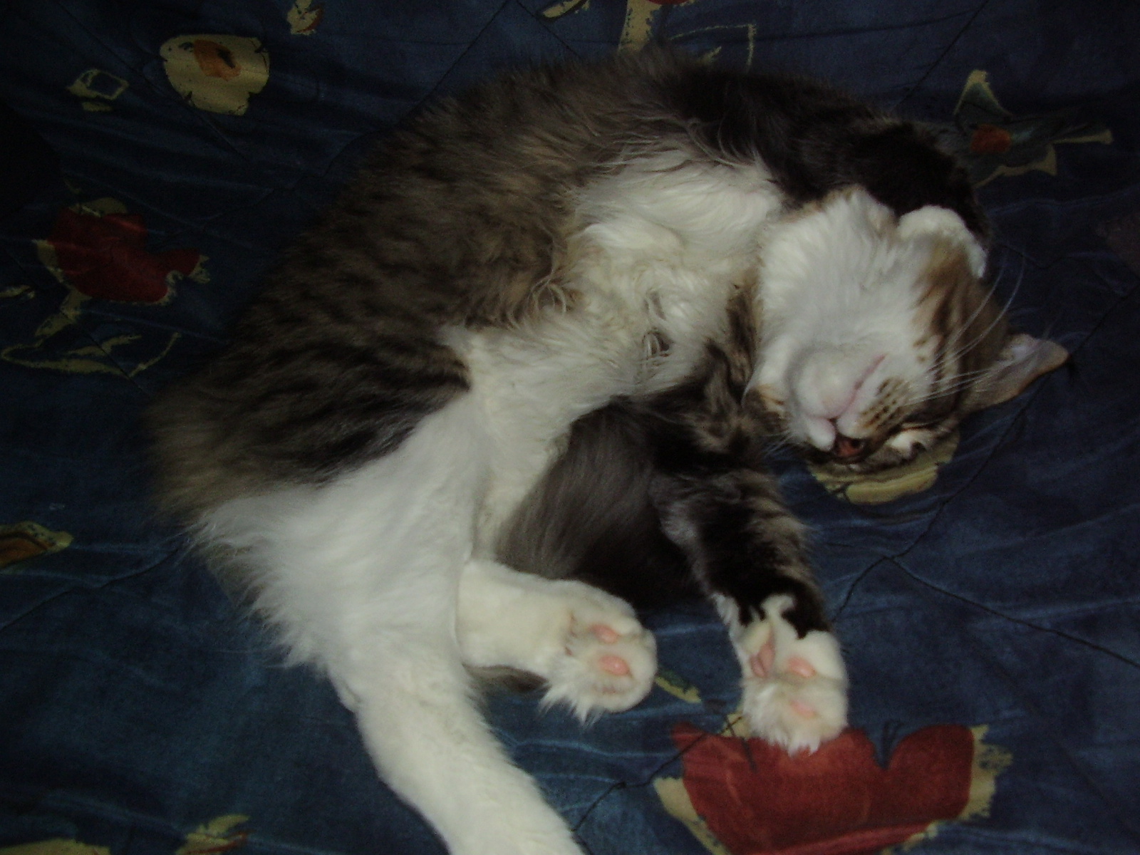 das ist mein 18 Jahre alter blinder "Krümel". Er schläft am schnellsten, wenn man ihn wie ein Baby im Arm hält - wie das früher bei den Puppen war, denen die Augen automatisch zugeklappt sind, wenn sie lagen.
