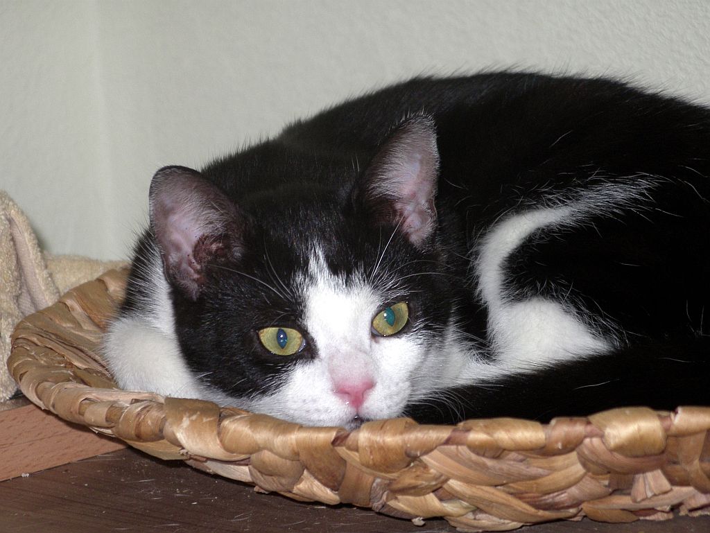 Die ist total lieb und schaut auch lustig aus mit der schwarzen Nase. Leider hat ihre Mutter sie versteckt und sie hatte darum keinen Bezug zu Menschen, als sie sich endlich zeigte. Wir hätten schon öfters einen guten Platz für sie gehabt, weil sie ja sehr hübsch ist, aber wir schafften es nie sie einzufangen...