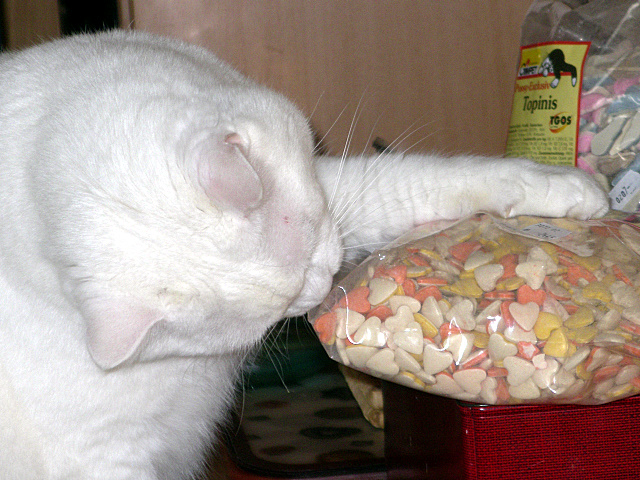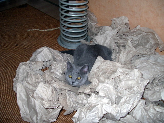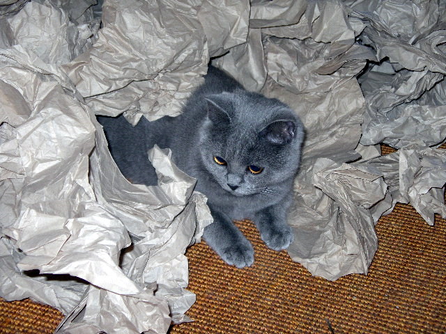 Josie ist eine BKH blau und einfach nur lieb. Kein kratzen und beißen, keine Zicken und Macken. Jenseits von allem Bösen und nur schmusig. Mal sehen, wie sie sich noch entwickelt. Eine Marotte hat sie allerdings: sie klaut alles, was klein, handlich und in ihr Mäulchen passt. Kugelschreiber, Feuerzeuge, leere Zigarettenhülsen von meinem Mann, meine Stricknadeln... Müssen wir alles unter Verschluss halten.