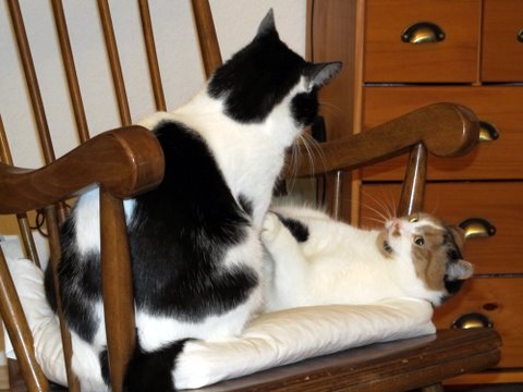 Meine haben heute wieder einmal ein Kämpfchen um den begehrten Schaukelstuhl-Platz