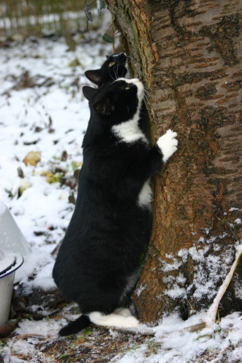 Na ja, jetzt bleiben sie im Garten, mal abgesehen vom Tierarztausflug den sie im Frühjahr machen werden. Dort ist es sehr ruhig (sehr wenig Autos) und Felder zum Mäuse fangen direkt hinterm Garten. Ich hab sehr lange gebraucht bis ich ihnen Namen gegeben habe, weil ichs mir nicht noch schwerer machen wollte sie wieder wegzugeben, aber mittlerweile sind sie mir sehr ans Herz gewachsen und sind auch auf mich fixiert (auch wenn sie sich immer noch nicht anfassen lassen). Ich vergesse immer das sie eigentlich Menschenscheu sind, das fällt mir erst immer wieder auf wenn Spaziergänger vorbei gehen und sie entdecken. Dann verstecken sie sich sofort oder rennen panisch weg.