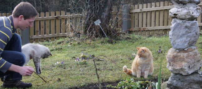 Wenn ich mit Silvio auf dem Arm an ihr vorbeispaziere, kann es schon mal sein, dass sie abhaut oder ihn anfaucht, aber es gibt ja genug Platz für beide