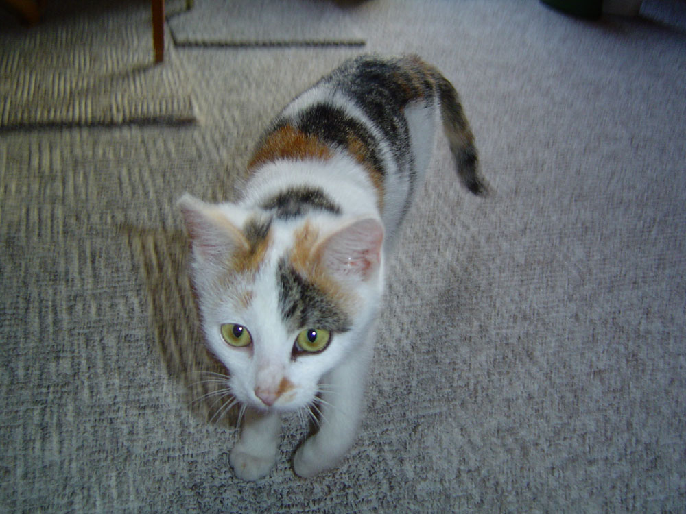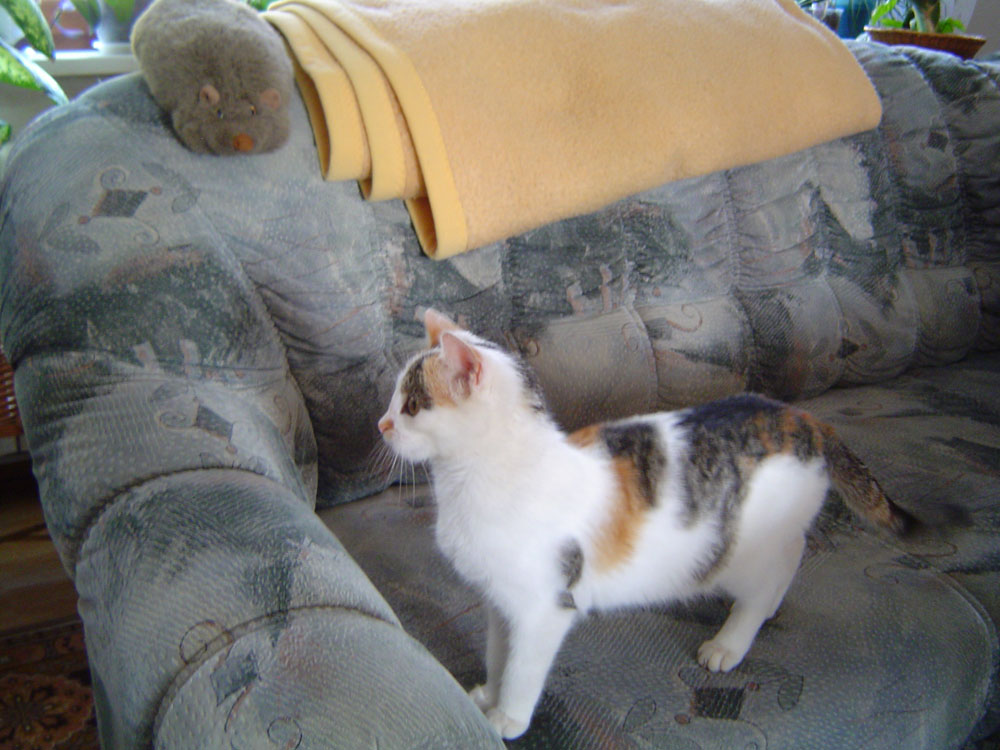 mein Findelkind ist ein Unband an Energie. Sie tobt durchs Haus (vorzugsweise, wenn die anderen beiden draußen sind) und ist kaum zu bändigen. Überall muss sie drauf springen und balancieren. Zum Glück ist noch kein Blumentopf herunter gefallen. Da sie so schnell ist, kann man sie garnicht so gut fotografieren.