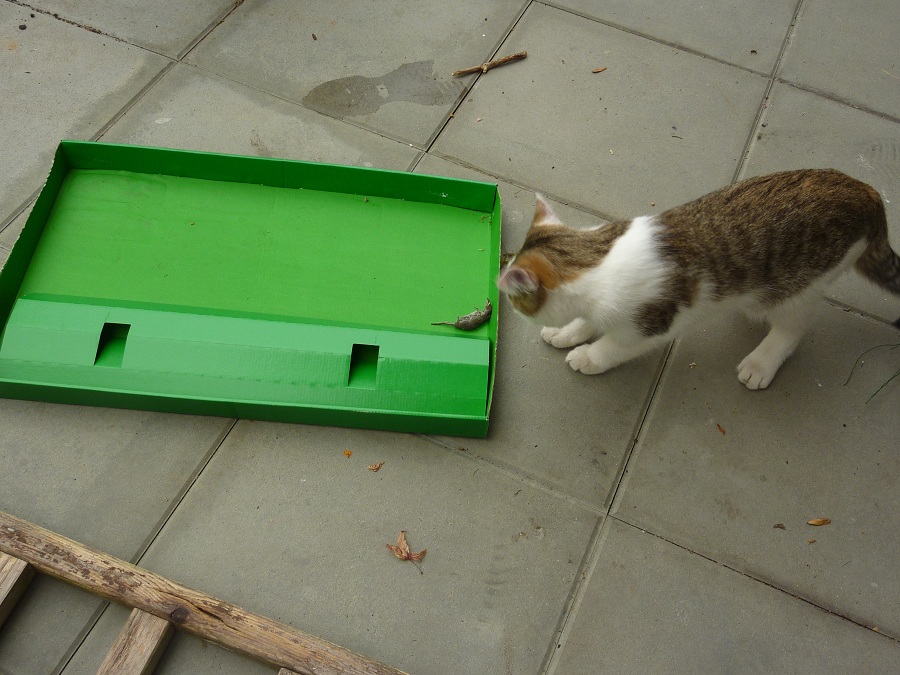 Heute ist irgendwie ein ziemlich aufregender Tag für Baghira... Gerade eben: Die erste Maus! EIne arme kleine Spitzmaus...
