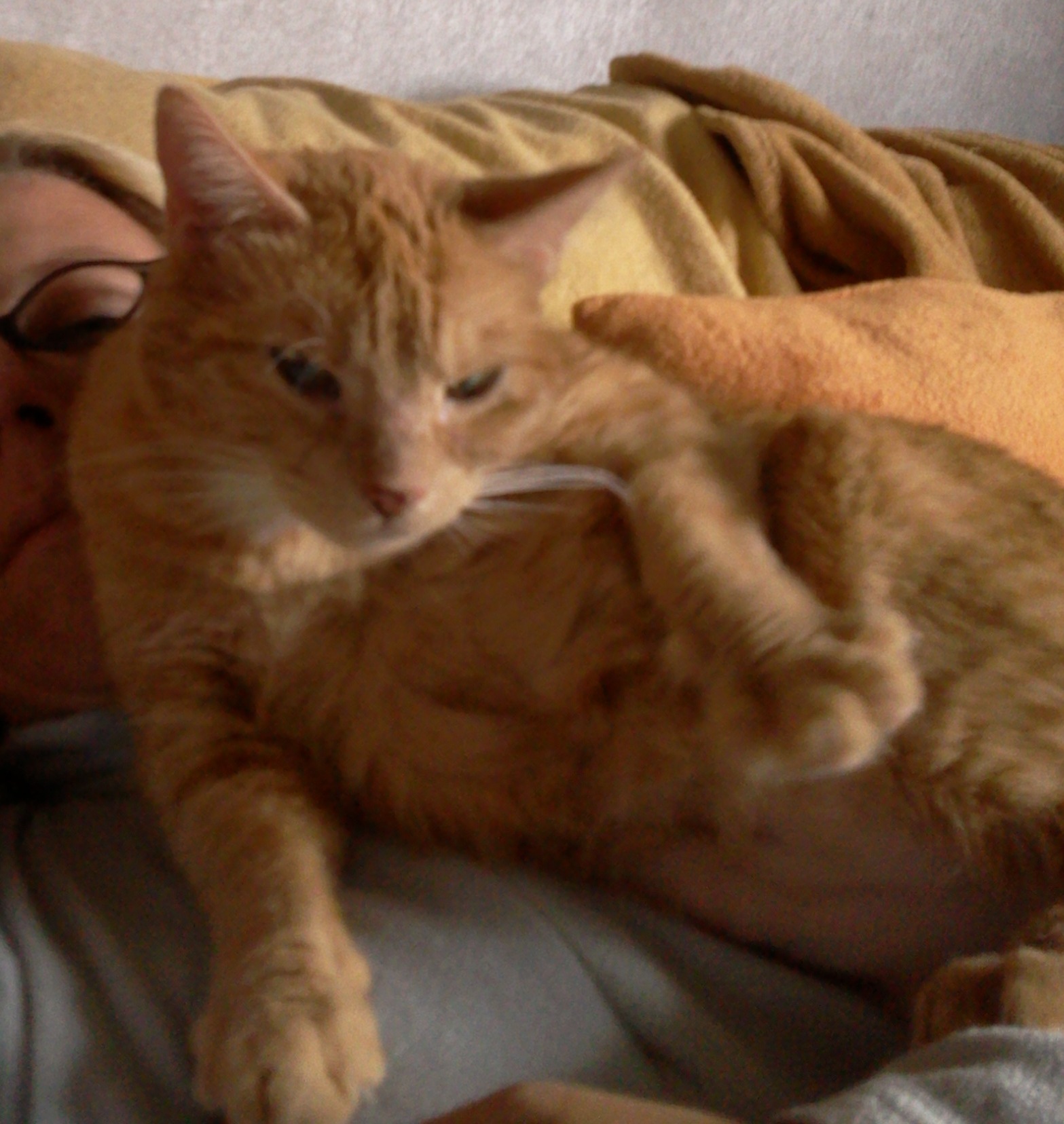 apropos komische Stellungen.... mein Kater hockt immer in einer couchpotato-Haltung. Er sitzt auf dem Hintern, Beine lässig breitbeinig ausgestreckt, und mit der einen Pfote hält er sich am Knie fest (oft).