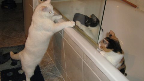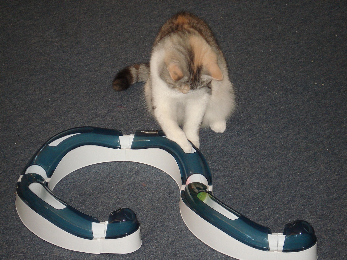Noch schlimmer - er hat inzwischen das Bad für sich entdeckt, balanciert von der Waschmaschine zur Badewanne, aufs Waschbecken und schaut nach oben zur Duschstange.