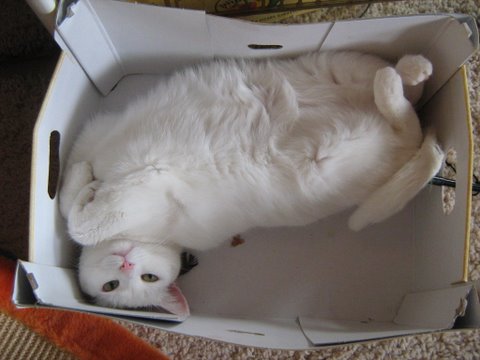 wenn sie gerade Lust hat. Am liebsten liegt sie in einem ihrer geliebten Kartons: