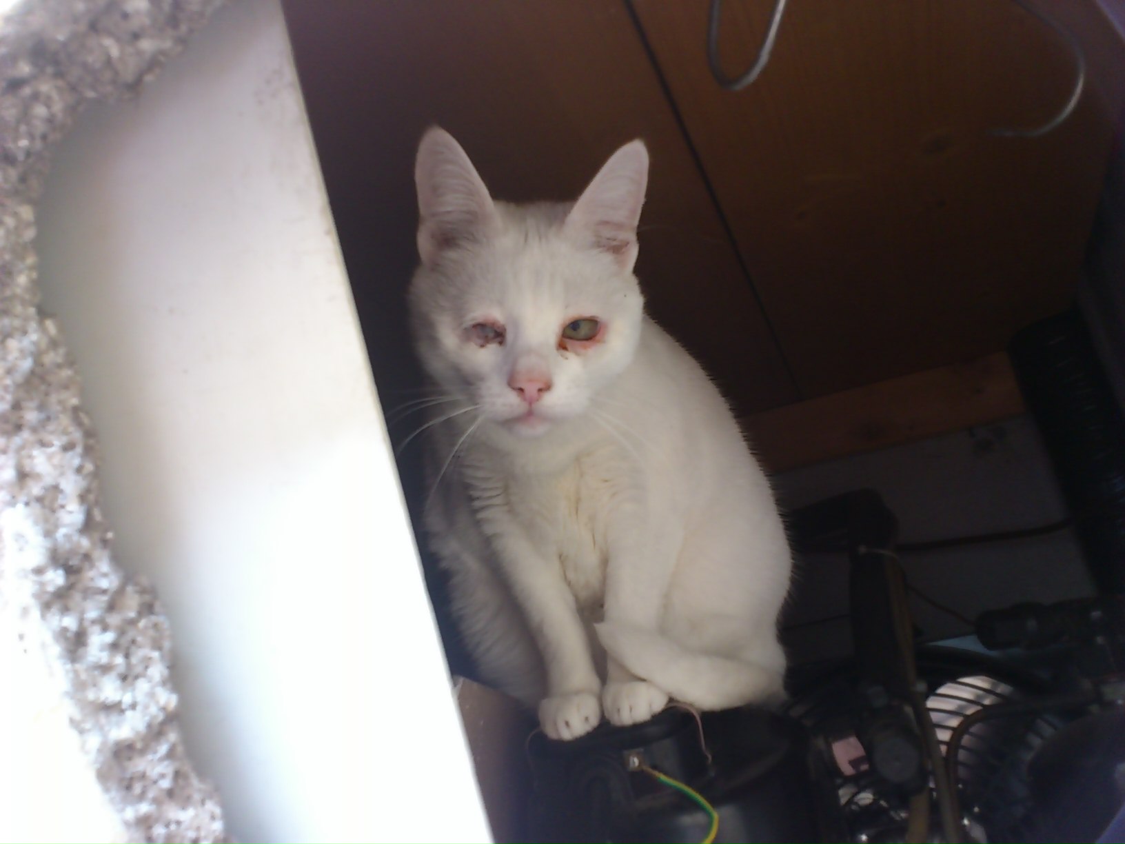 Boah, is datt n hübscher Brummer!!! Und Ihr habt Kitty's mit total süßer Zeichnung!!! ....Gemälde, die die Natur gestaltet hat!! Das sieht manchmal echt witzig aus... Hier n Tupfen, da ein Fleckchen.... Mein Bean ist nackisch was das angeht... ...hier sitzt er auf unserer KühlMaschine-auf etwa 15x20 cm, mit Ventilator im Rucken.... Der Motor ist im Winter schön warm und die Vibration beruhigt ihn anscheinend... ...der kleine Fettsack schaukelt sich dadrau im wahrsten Sinne des Wortes die Eier...