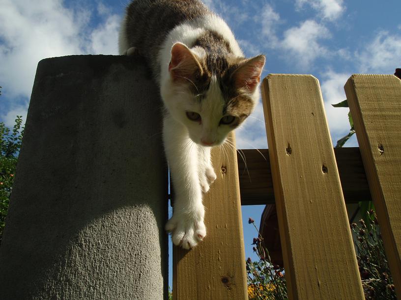 Unsere eine Kleine die wir behalten dürfen, hab ich heute Morgen erwischt als sie gerade vom Zaun sprang