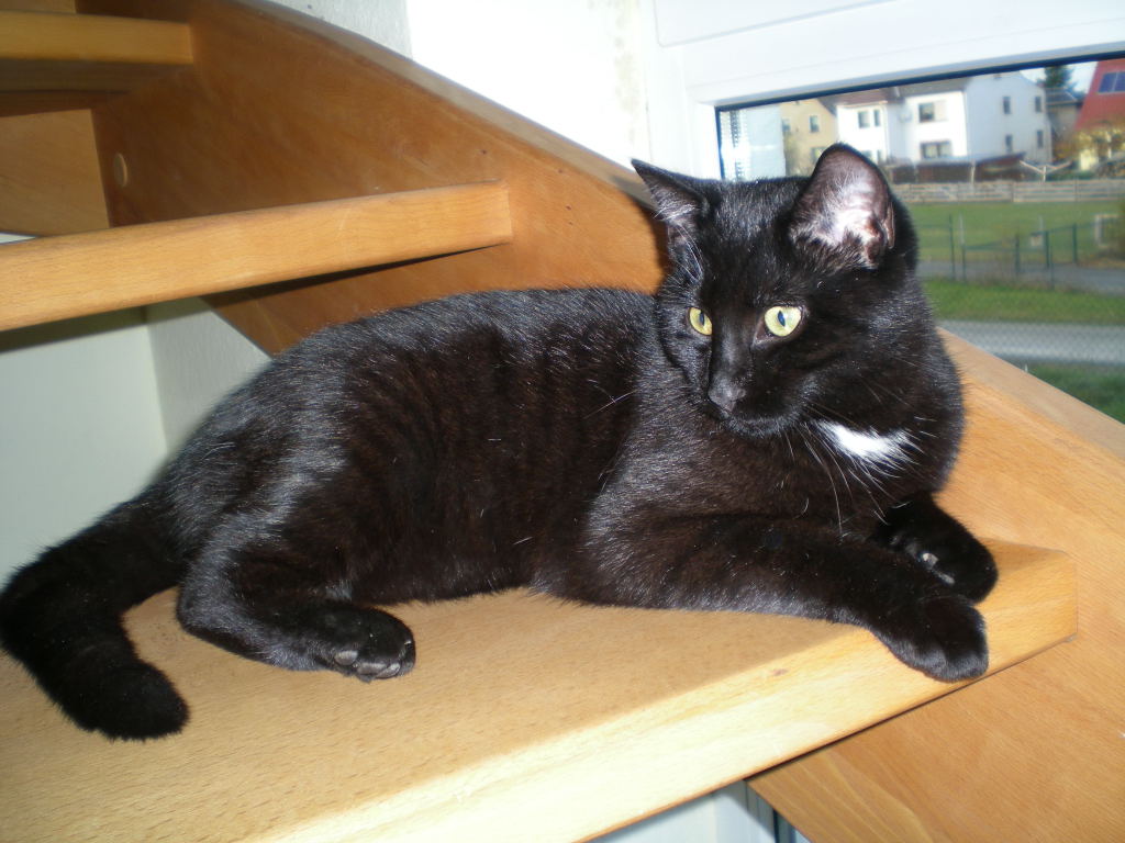 Der kleine Kerl (er heißt Felix)gehört eigentlich in die Nachbarschaft aber da sie dort keinen Garten haben tobt er den ganzen Tag bei uns oder bei meiner Oma im garten ist also nur weg wenn´s ums fressen und schlafen in der Nacht geht.
