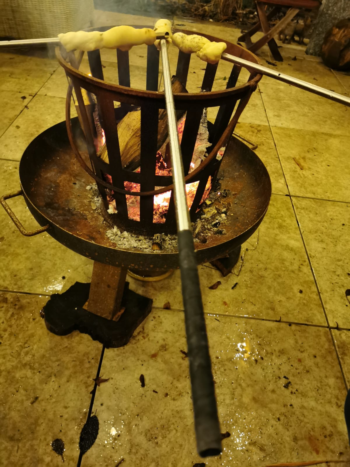 Stockbrot 10–12 Minuten über dem heißen Feuer rösten, dabei den Spieß gleichmäßig drehen.