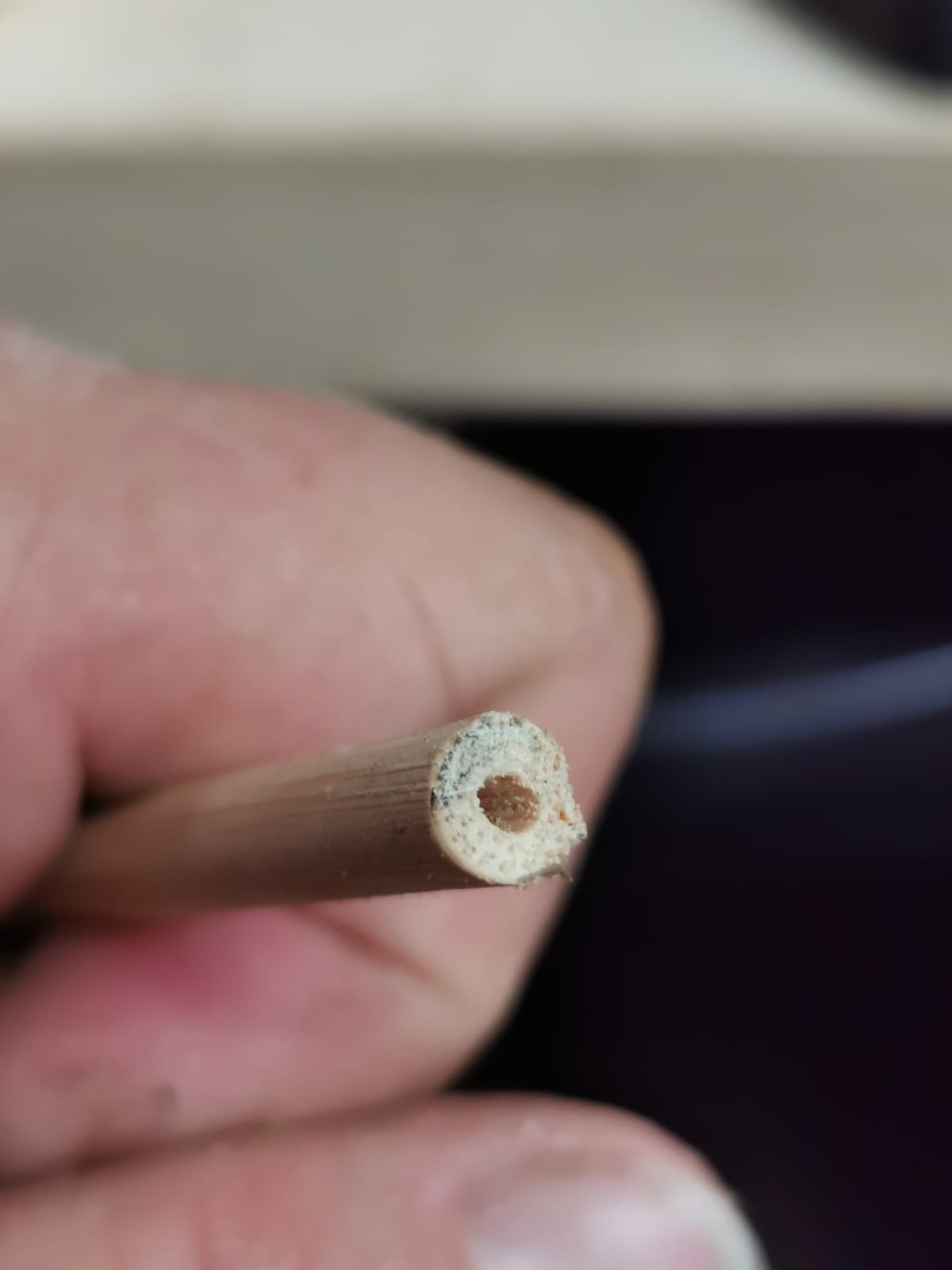 1x Holz-Rundstab in passender Größe (Pflanzstab, alter Pinselstiel, Sitzstange f. Ziervögel)
