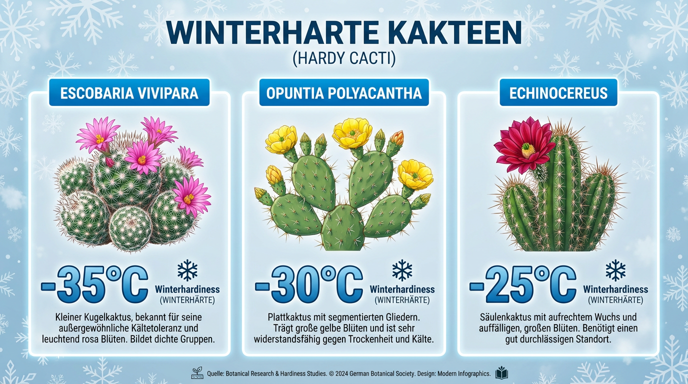 Ja, Sie haben richtig gelesen. Es gibt Kakteen, die nicht nur deutsche Winter überleben, sondern dabei auch noch eine gute Figur machen. Das Geheimnis dieser Überlebenskünstler liegt in ihrer Fähigkeit, Wasser aus ihren Zellen zu ziehen, um nicht von innen zu gefrieren. Ein natürlicher Frostschutz, der sie zu den wahren Helden des Winters macht.