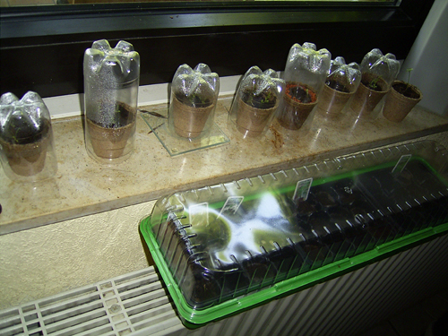Ich spanne immer noch Klarsichtfolie rüber oder den Becher/Blumentopf ins Gewächshäuschen stellen