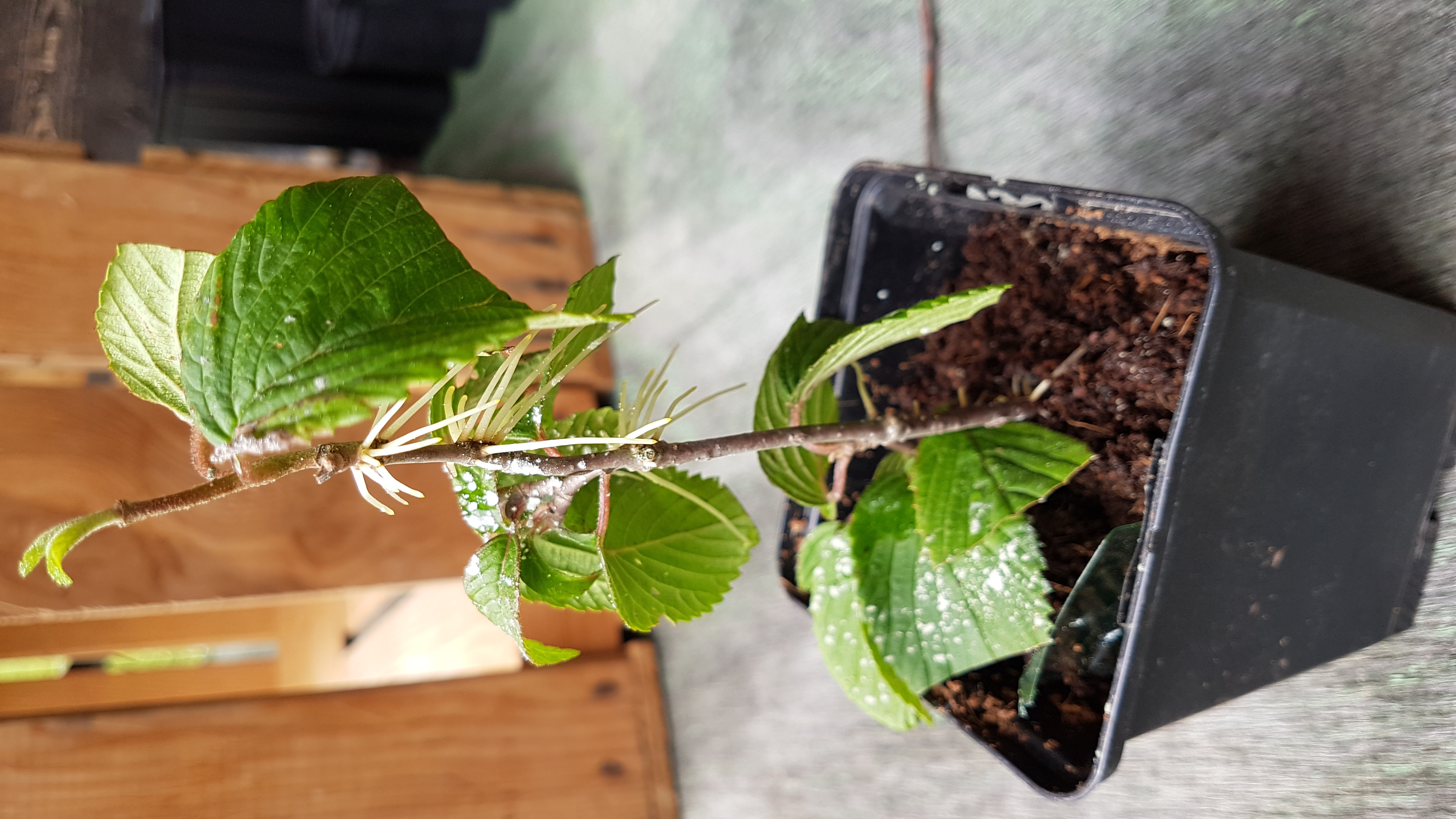 Mein Viburnumsteckling macht Wurzeln am Stecklingskopf! Habe in vor zwei Wochen gesteckt. Hatte leichte Verholzung vom letzten Jahr.