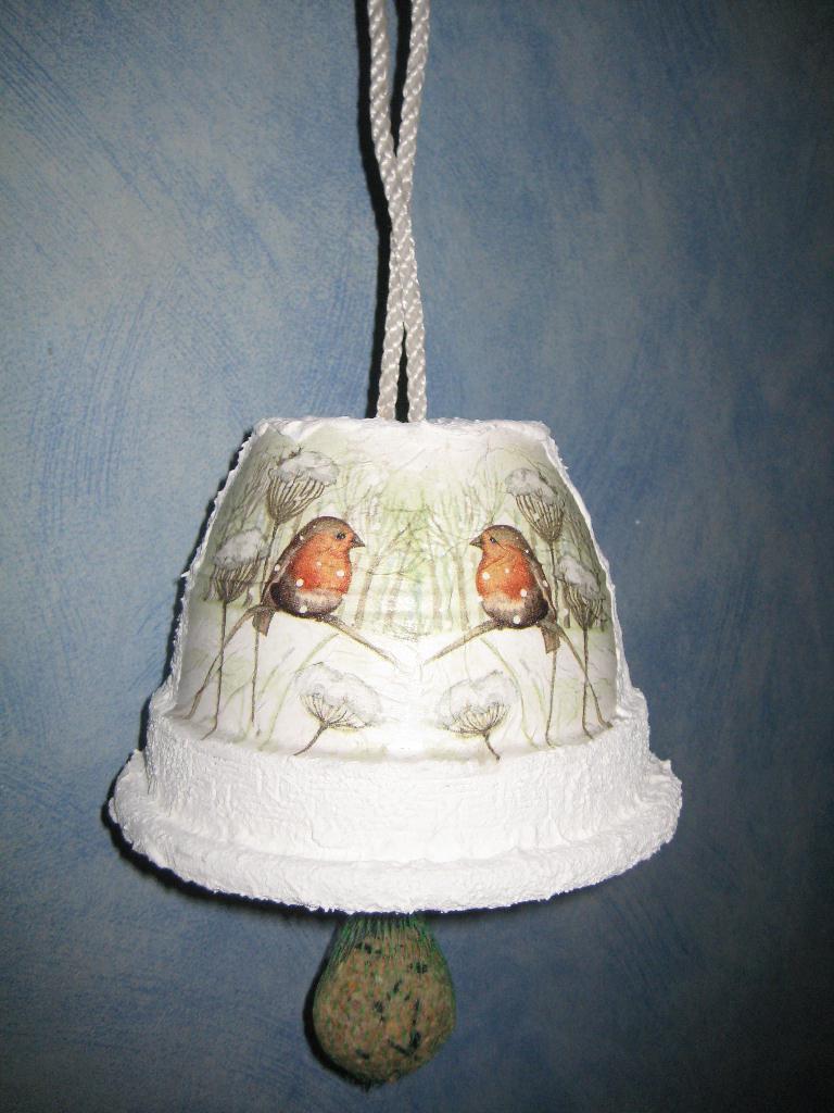 Hallo,,ich habe mir mal Zeit genommen,diese Vogelfutter-Glocke rechtzeitig fertig zu bekommen,bevor der Frost einkehrt,und die Meisen mögen sie schon,Gruß Bonny