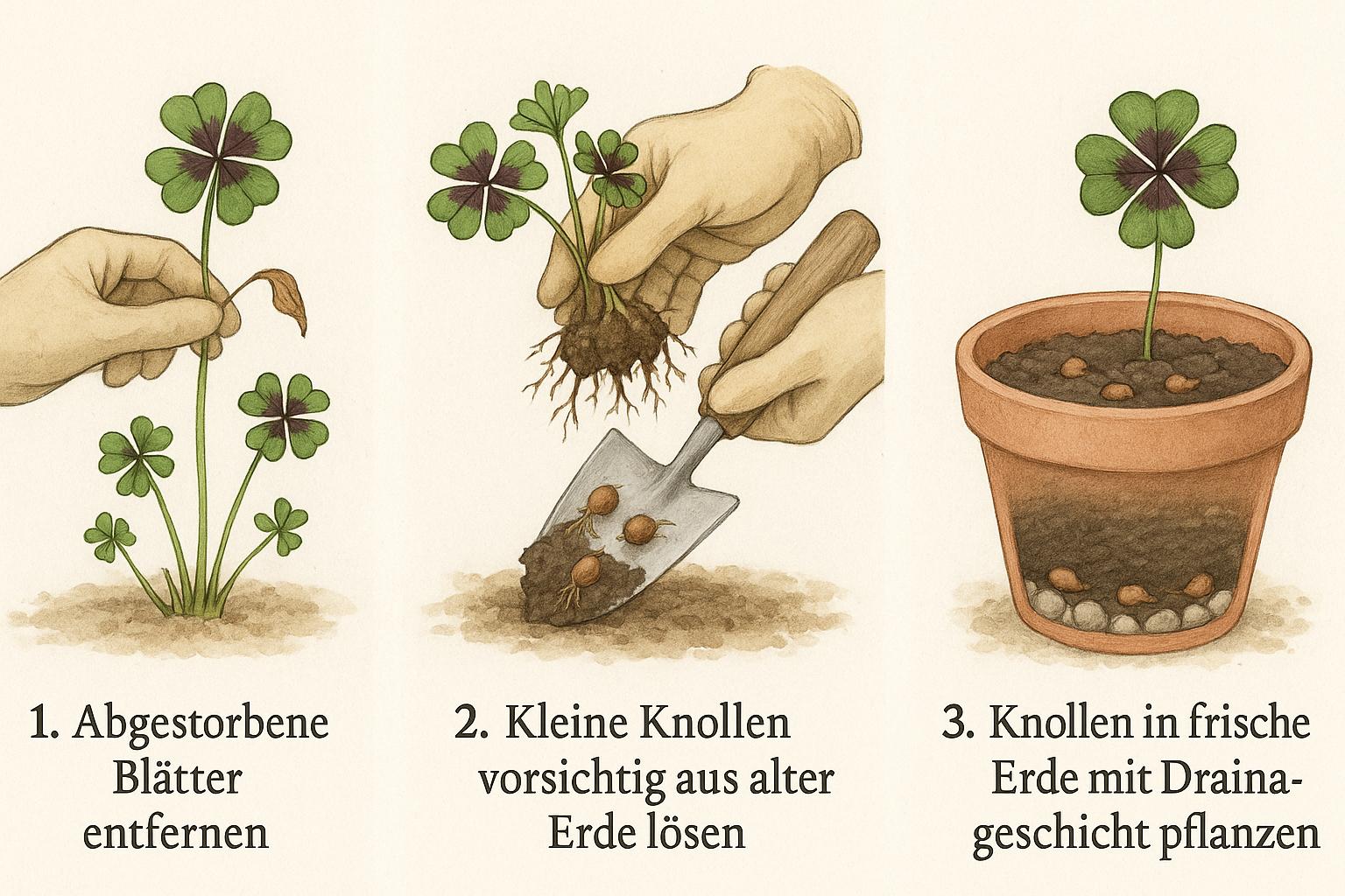 - Was passiert: Unter der Erde überleben die kleinen Zwiebeln – das Herzstück Ihres Glücksklees.