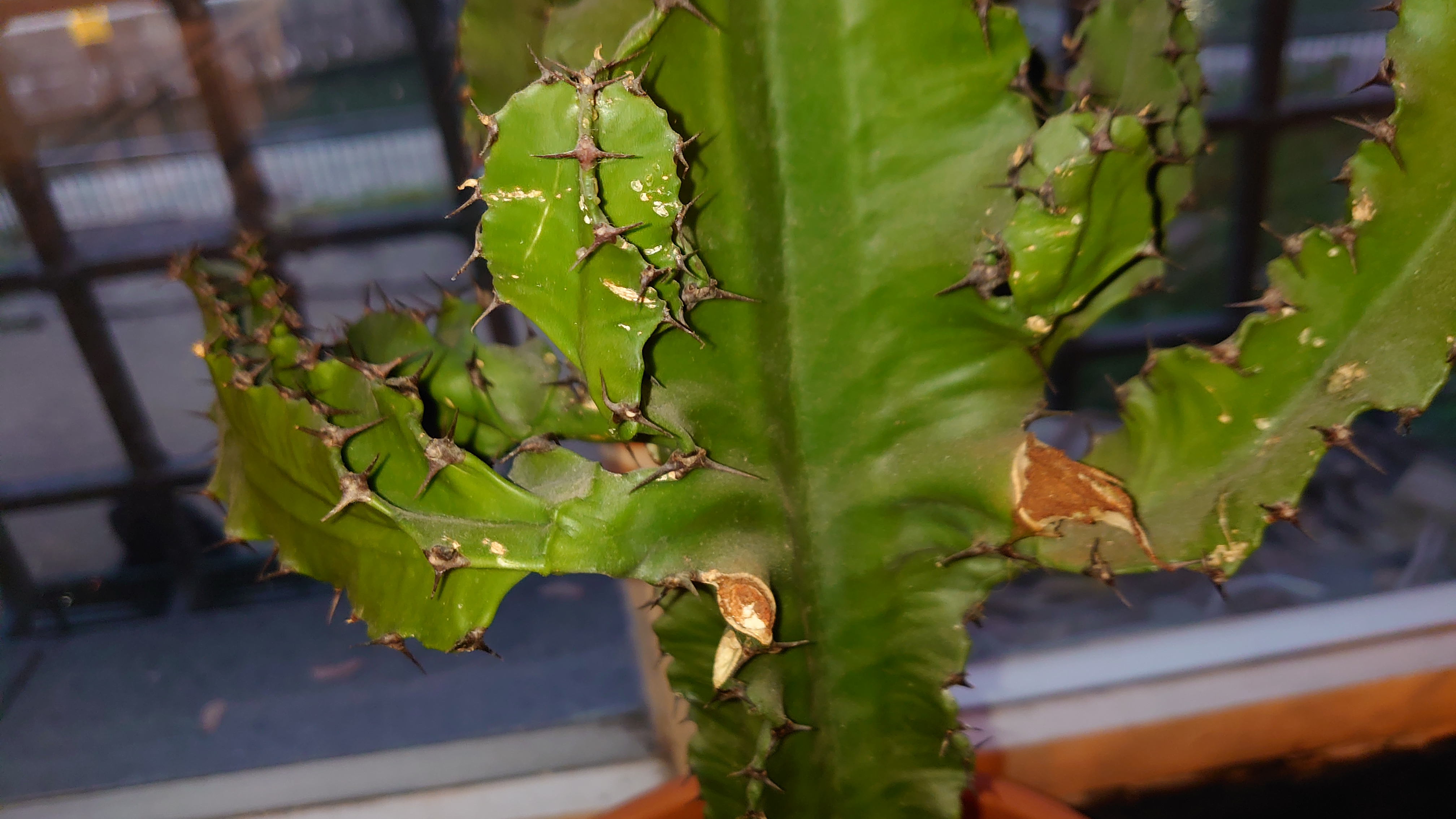Hallo, ich habe mich hier angemeldet, weil ich eine neue Arbeit seit ein paar Tagen habe. Ich arbeite in einem Kaffee in dem Pflanzen verkauft werden. Ich bin für die Pflege zuständig. Nun sind einige Pflanzen in einem schlimmen Zustand. Zum Beispiel dieser Kaktus hier. Ich bin nur Floristin vom BERUF und habe Grundkenntnisse von Pflanzen. Wenn es um Problemfälle geht, dann würde ich mich quasi immer melden. Was hat dieser Kaktus für eine Krankheit?