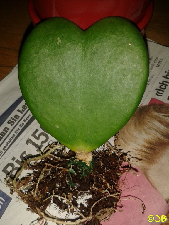 Sooo, nun hab ich die halbe Nacht an dieser Einblatt kerrii rumgefriemelt. Wollte endlich wissen, wie das untenrum aussieht (einzelne Wurzeln wuchsen ja schon oben und unten raus!) und sie neu einsetzen.